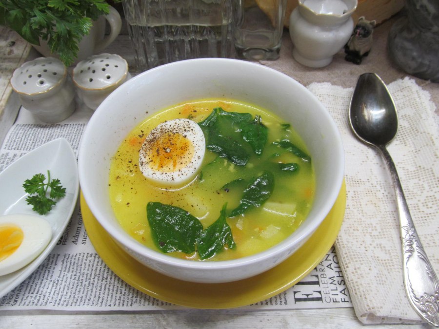 Шпинатный суп с яйцом