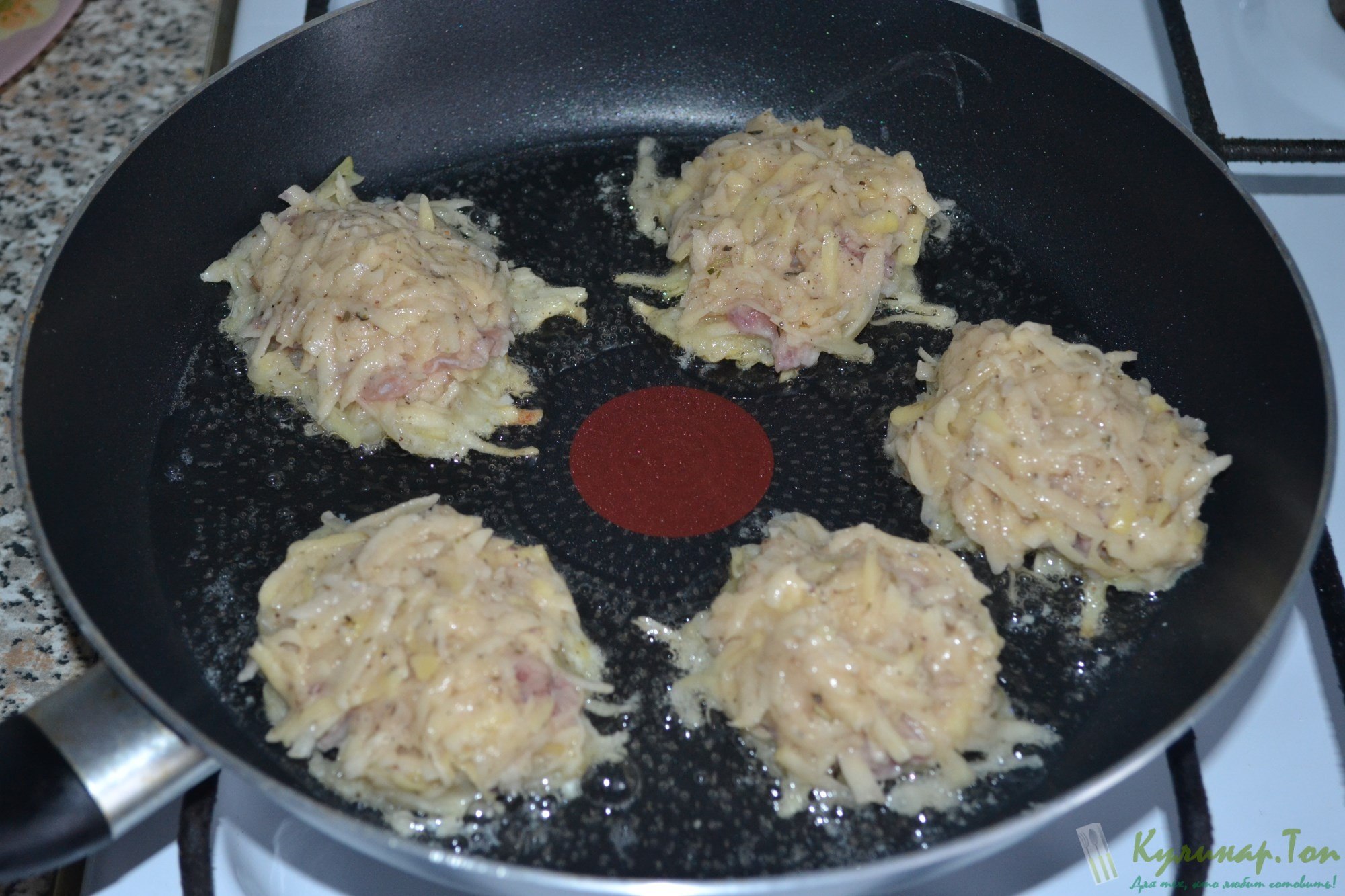 Драник большой на всю сковороду с фаршем