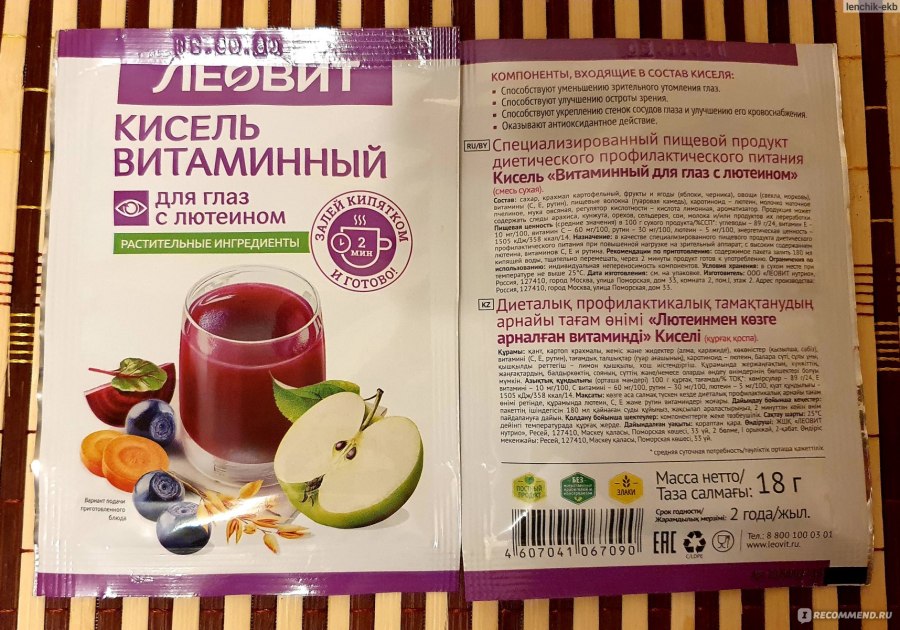 Кисель Леовит витаминный для глаз, с лютеином 5 шт. По 18 г