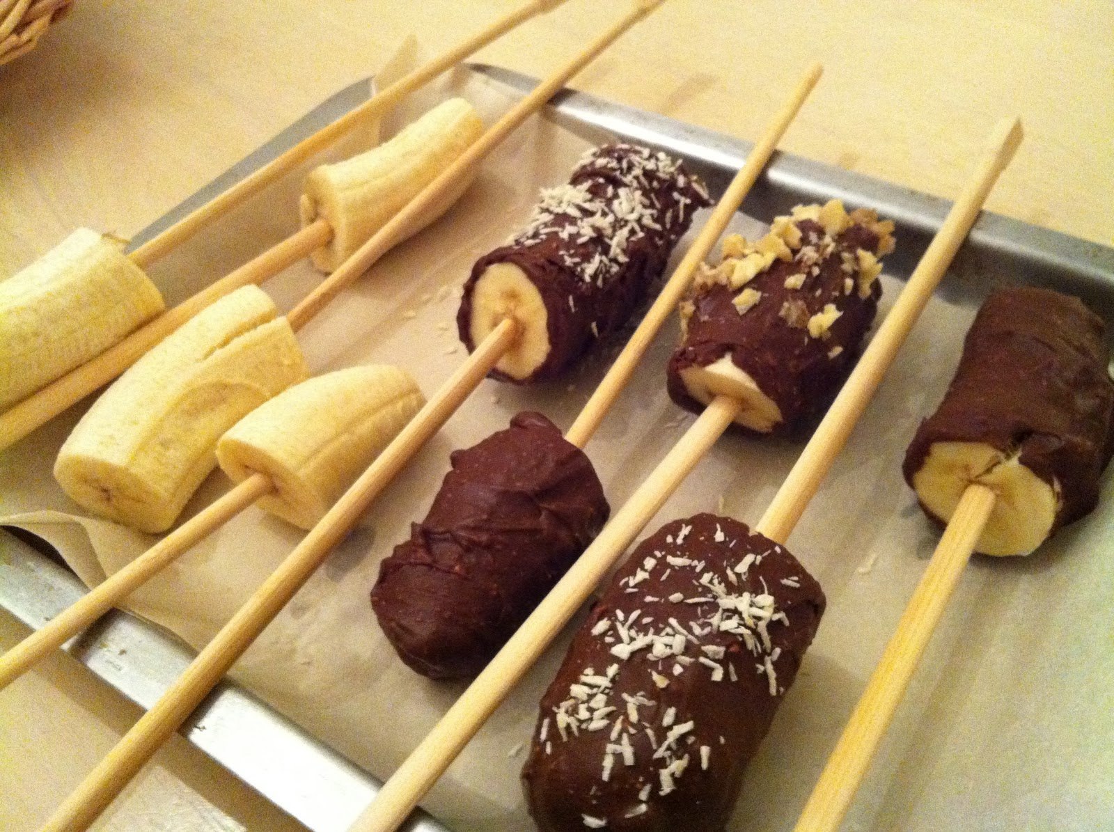 Бананы в шоколаде на шпажках