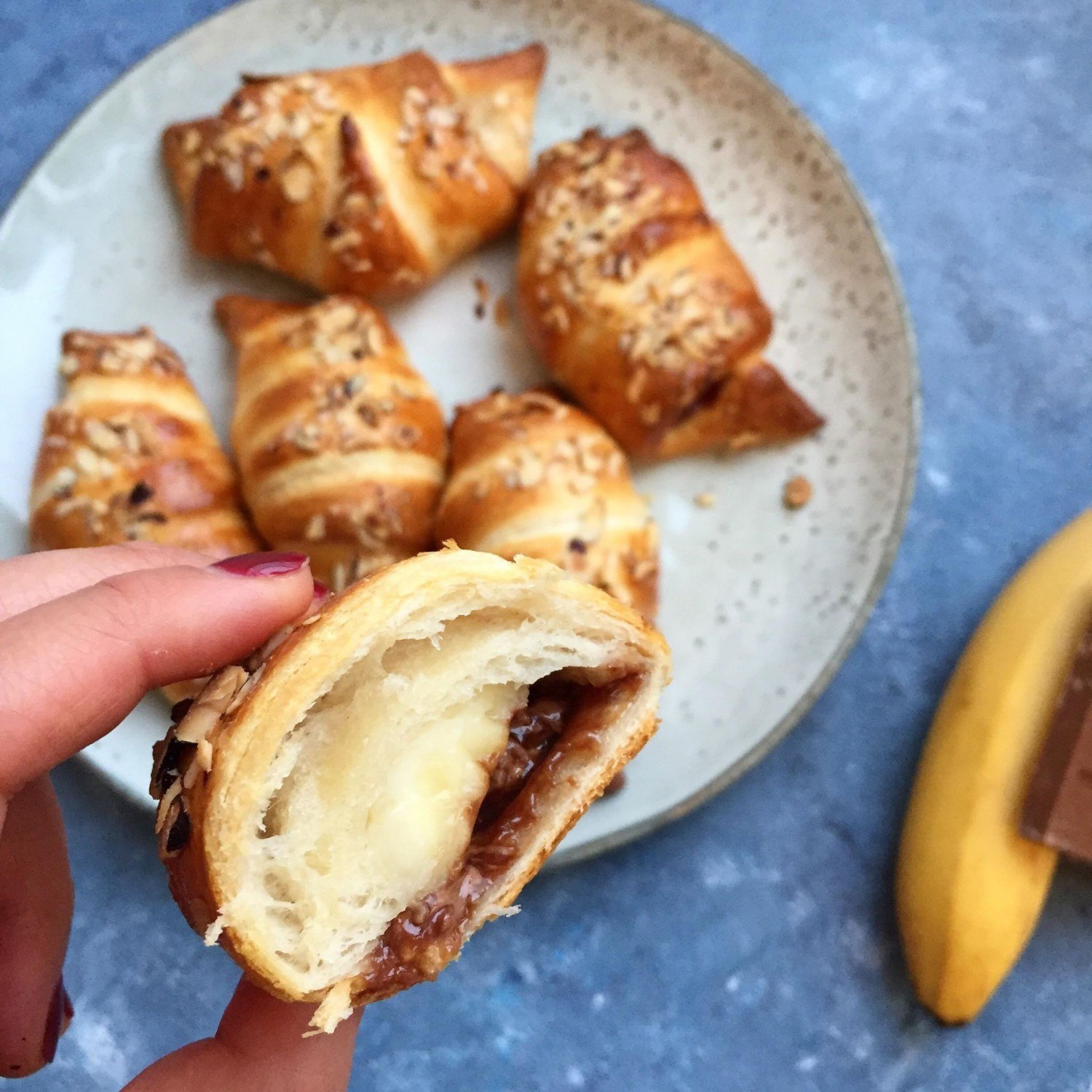 Слойка с бананом и шоколадом