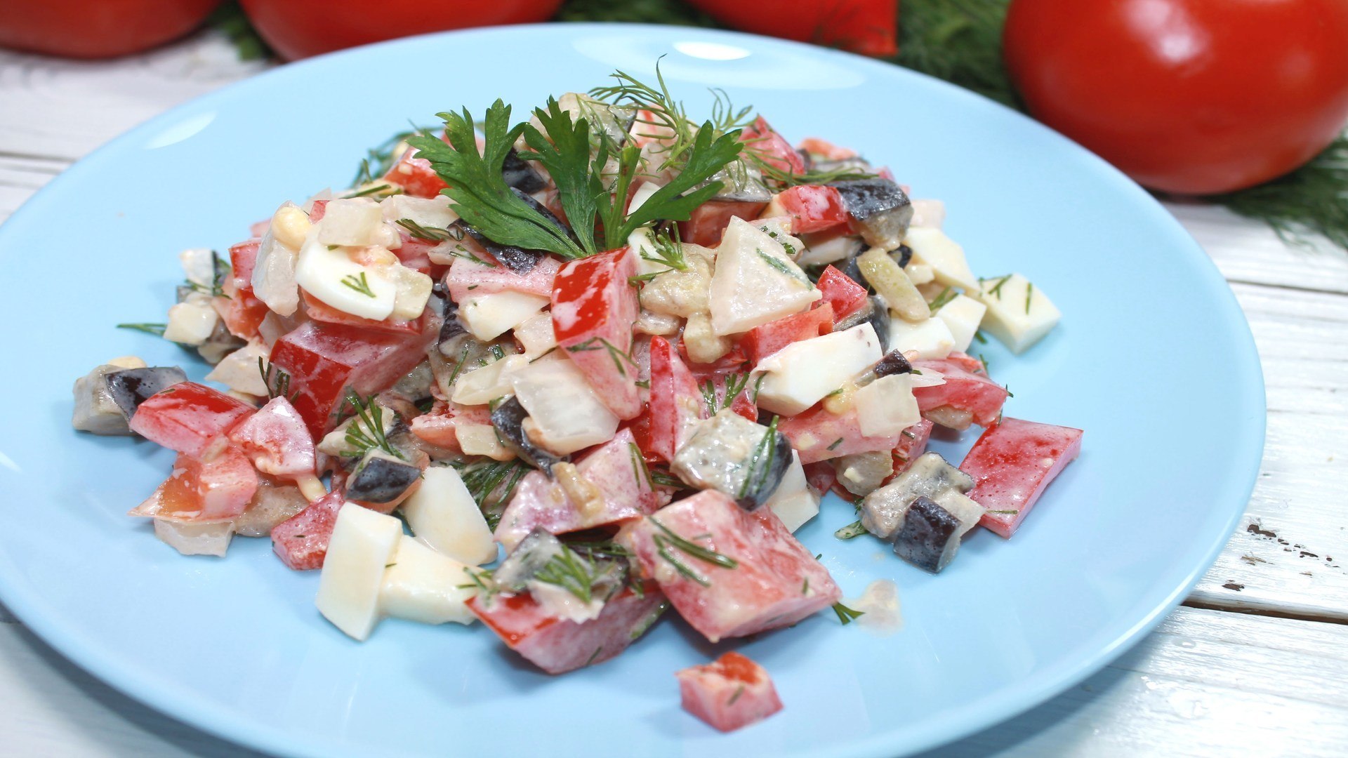 Салат с баклажанами и яйцами
