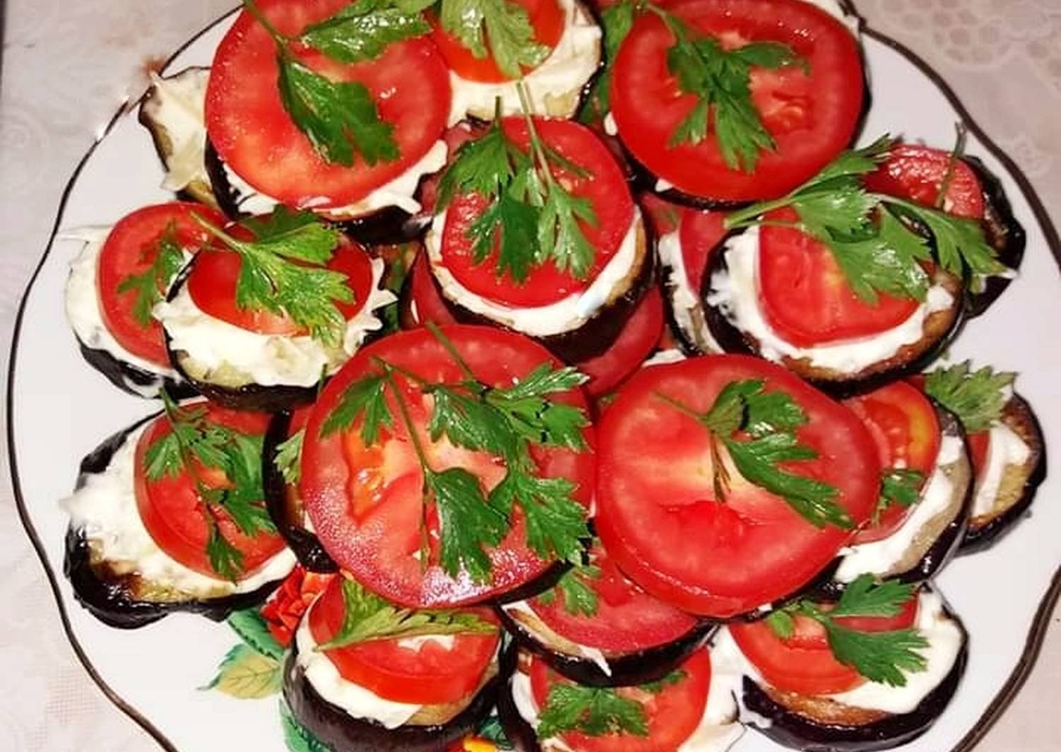 Рулетики из баклажана с фетой и помидорами