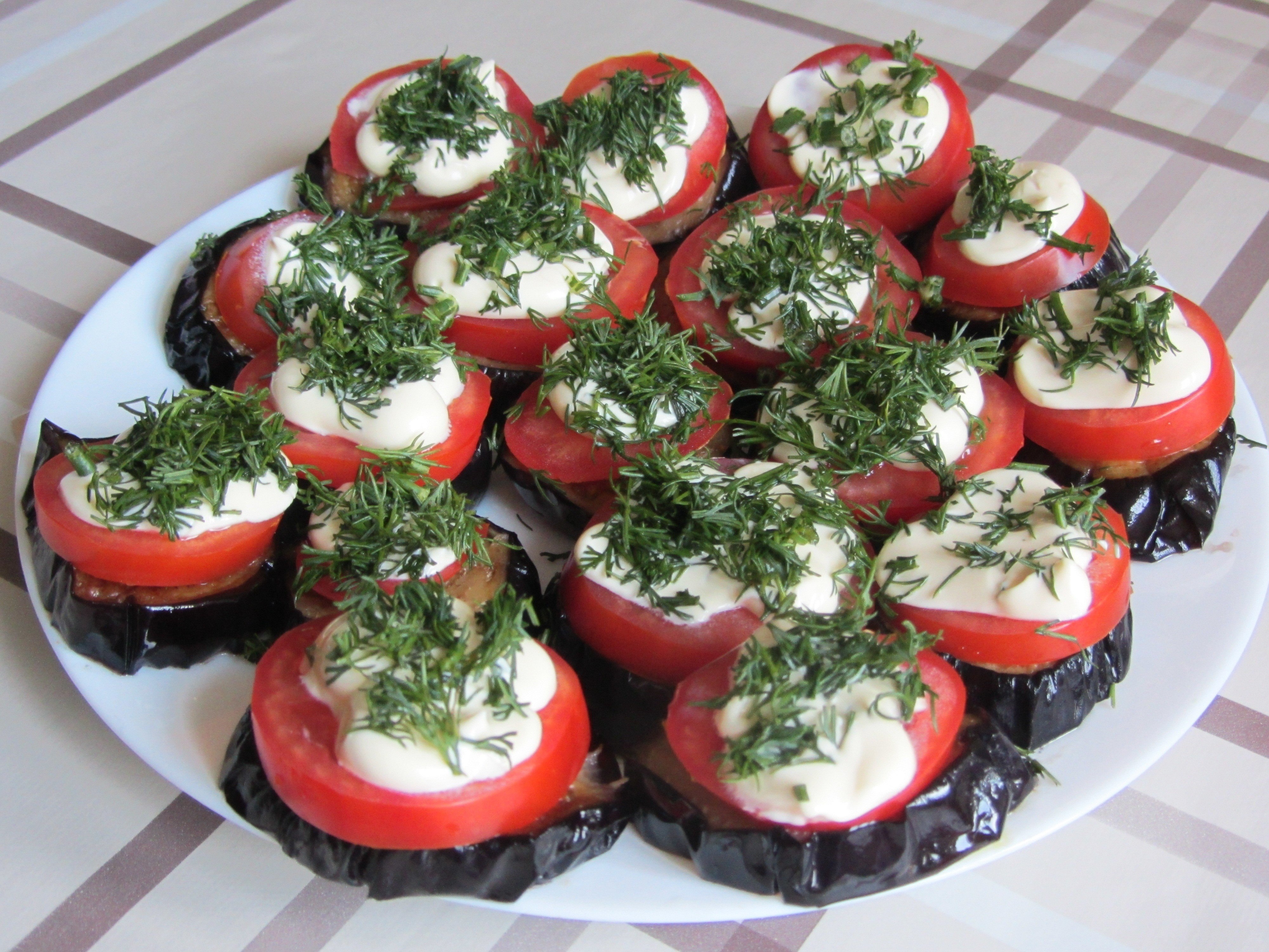 Баклажаны с помидорами и чесноком закуска
