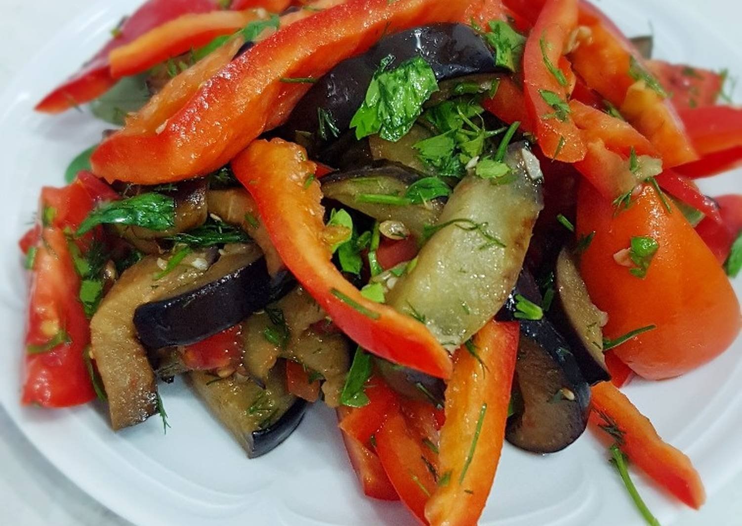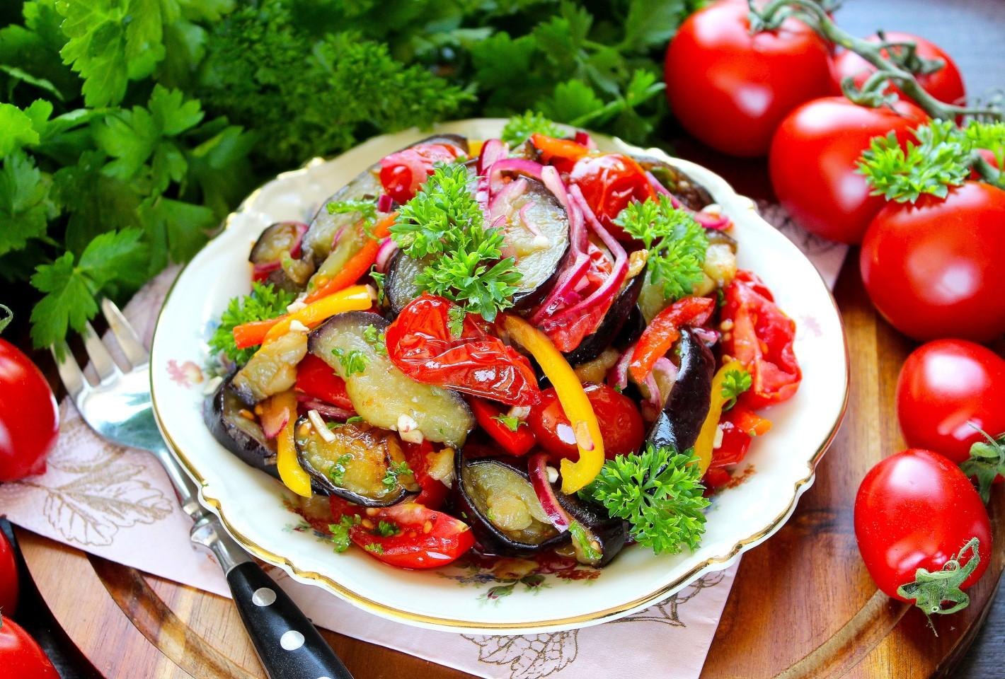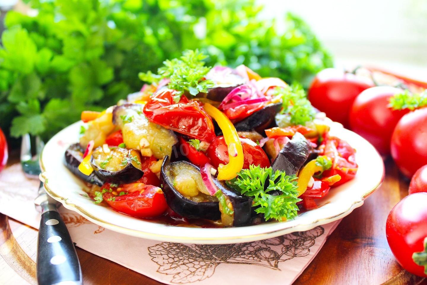 Салат из баклажанов с помидорами и чесноком
