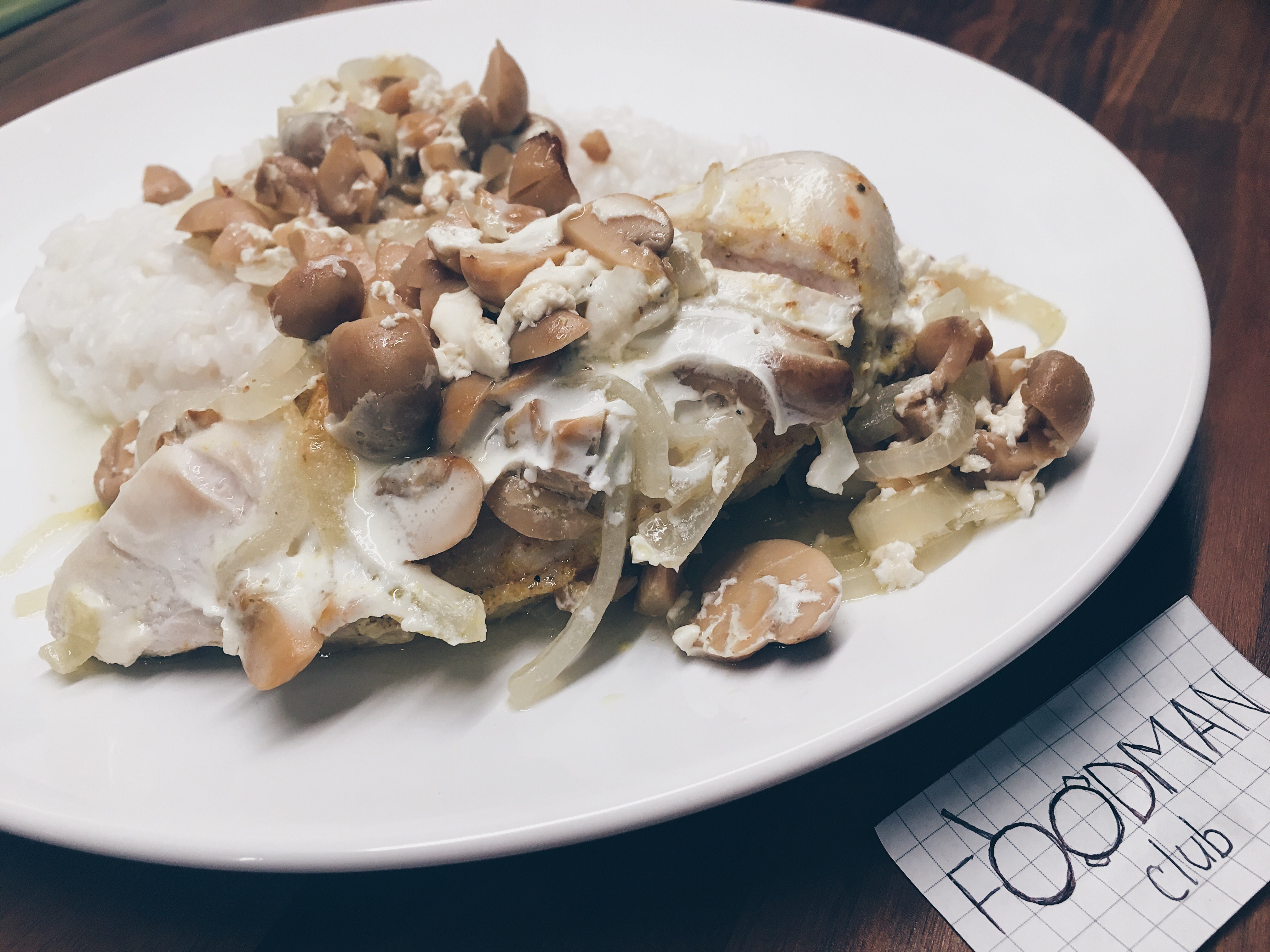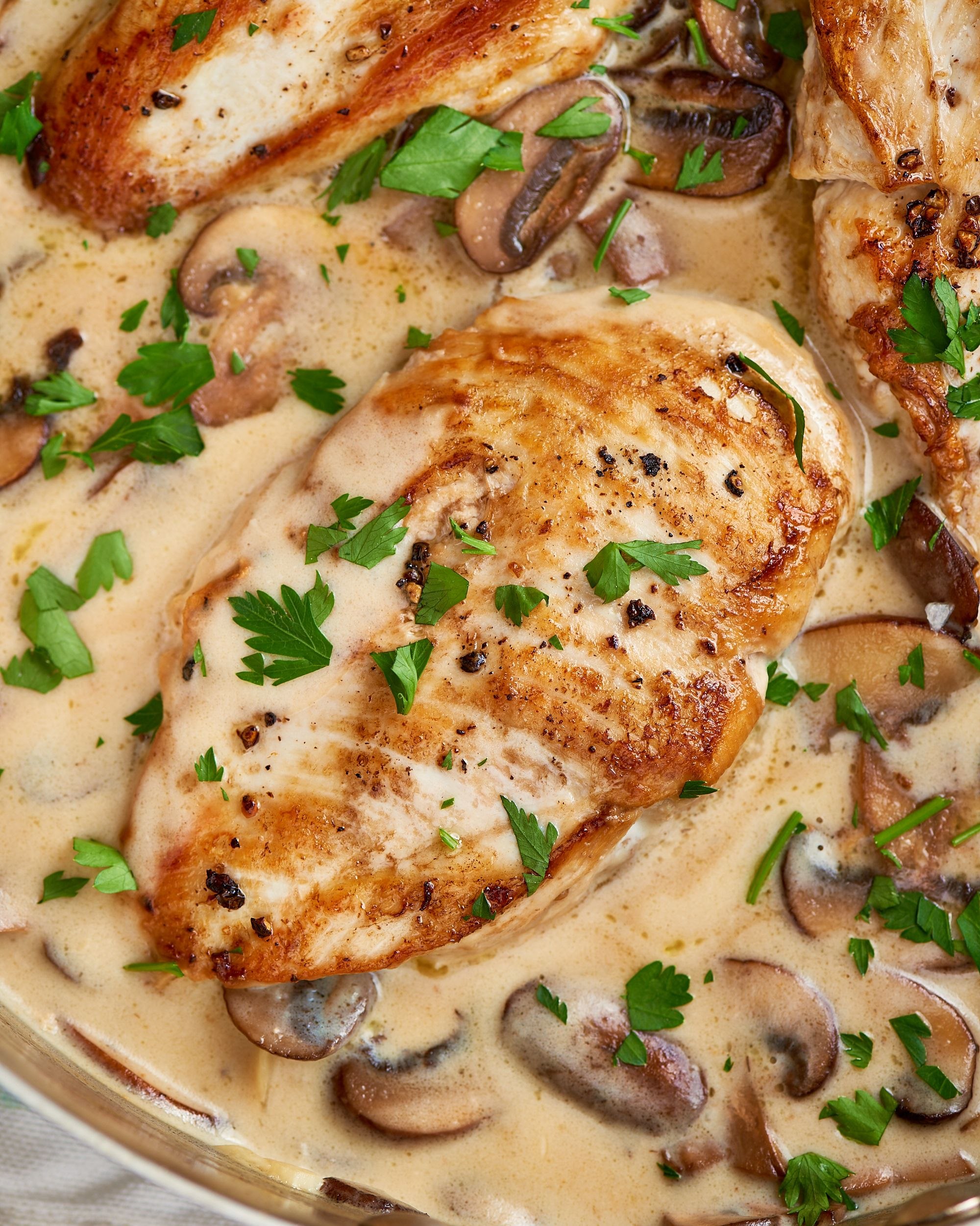 Куриная грудка в сливочно грибном соусе