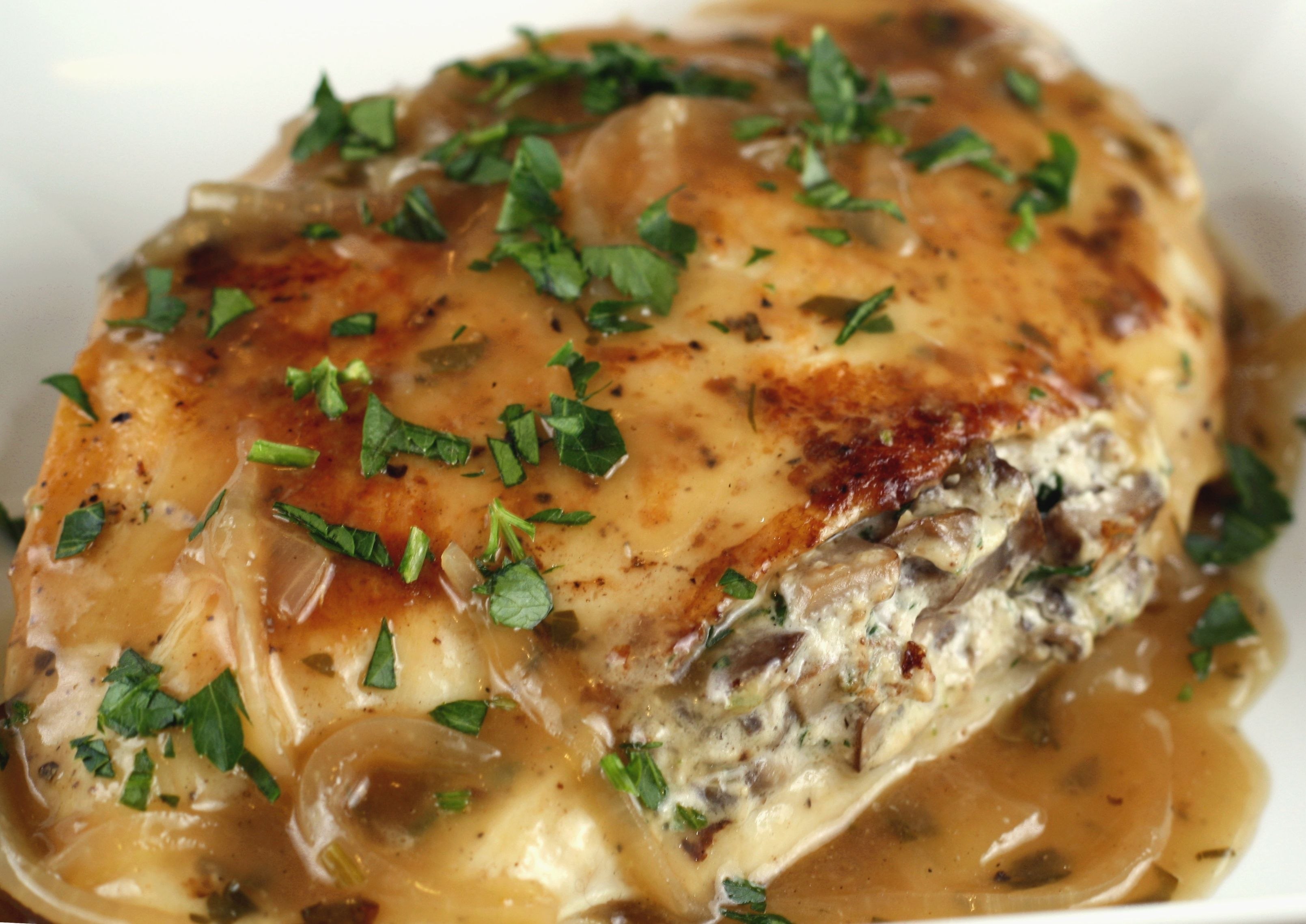 Грудка фаршированная грибами в духовке