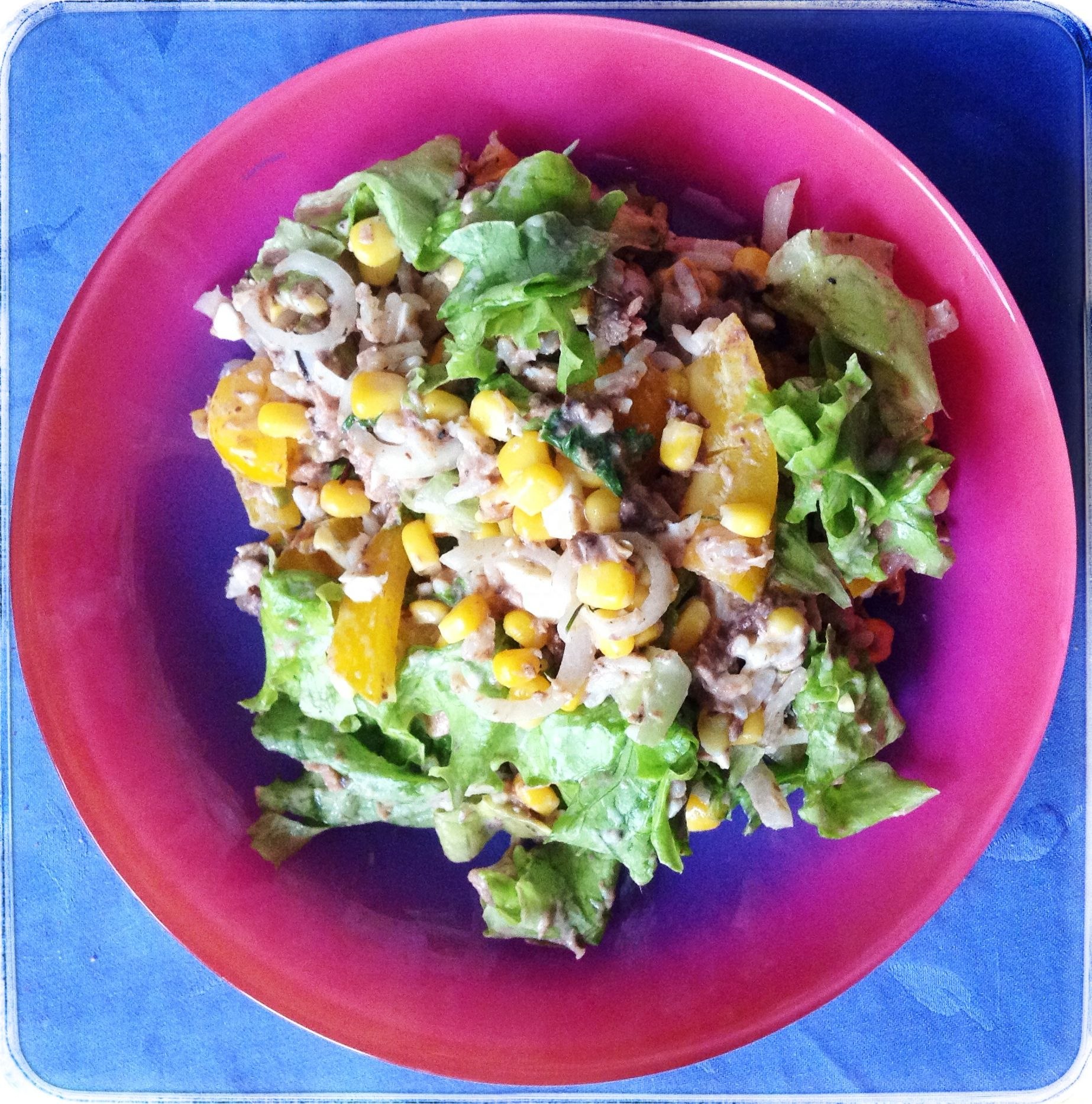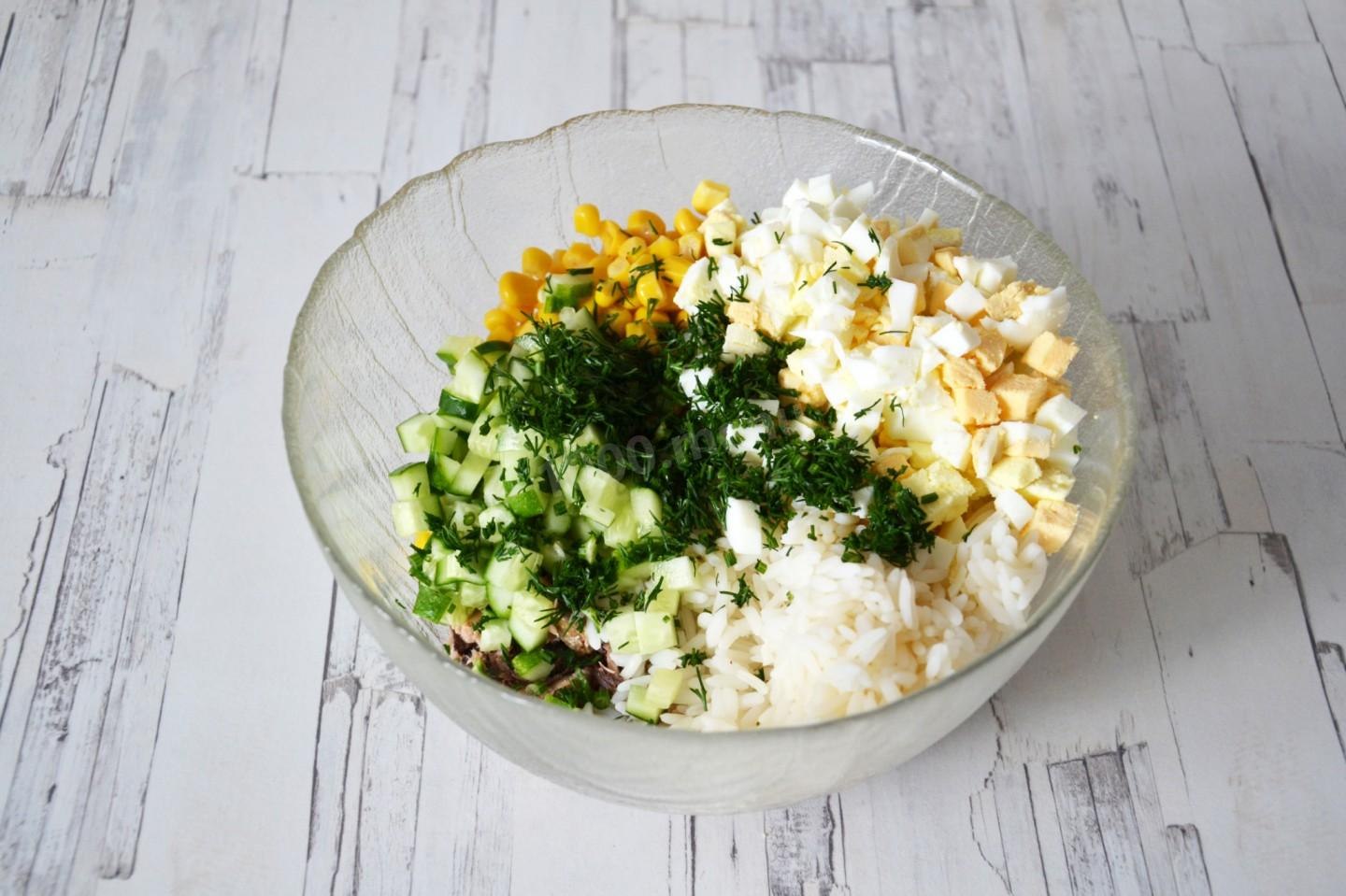 Салат с тунцом рисом и кукурузой