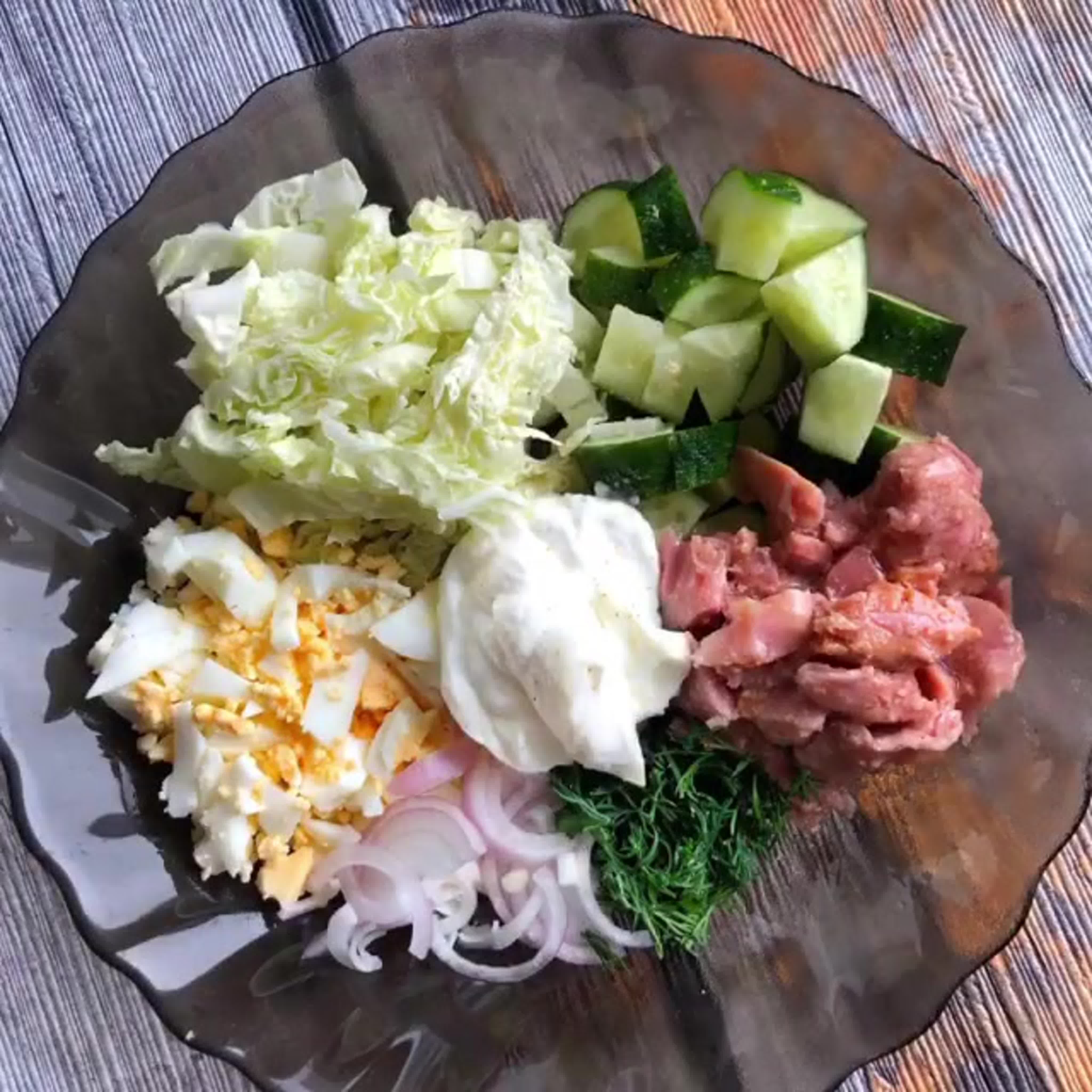 Салат с тунцом и пекинской капустой и яйцом