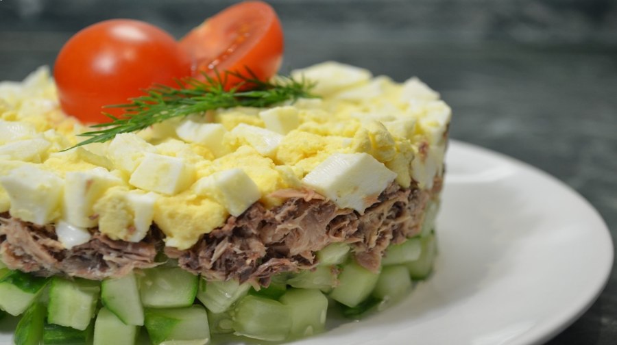Салат с тунцом и яйцом и огурцом