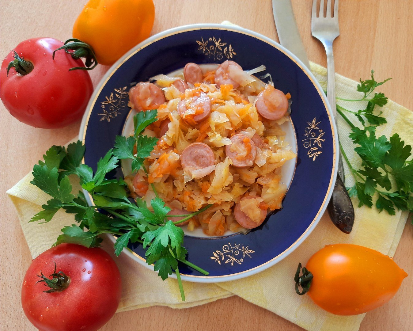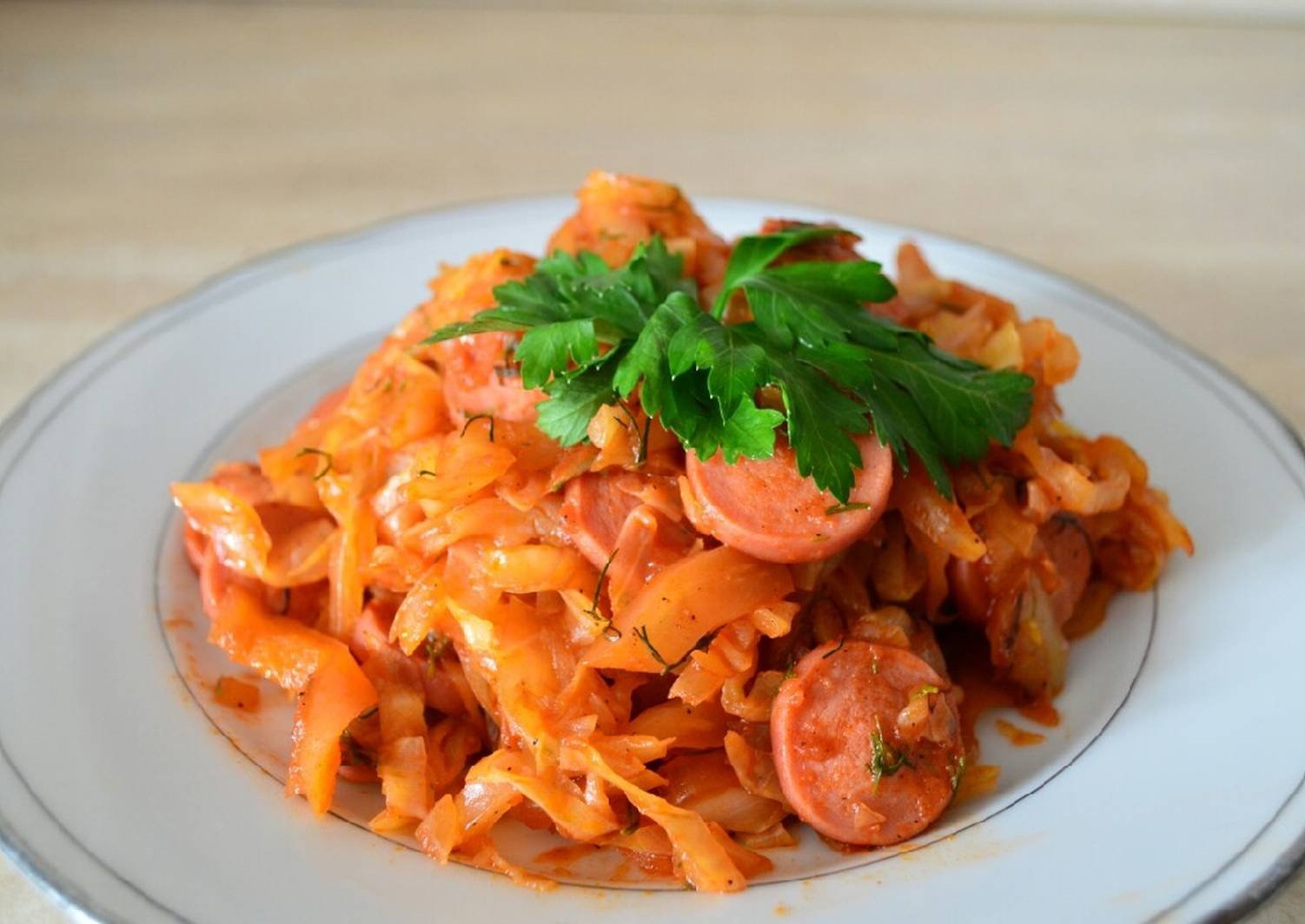 Тушёная капуста с сосисками