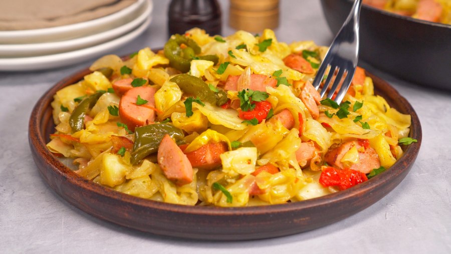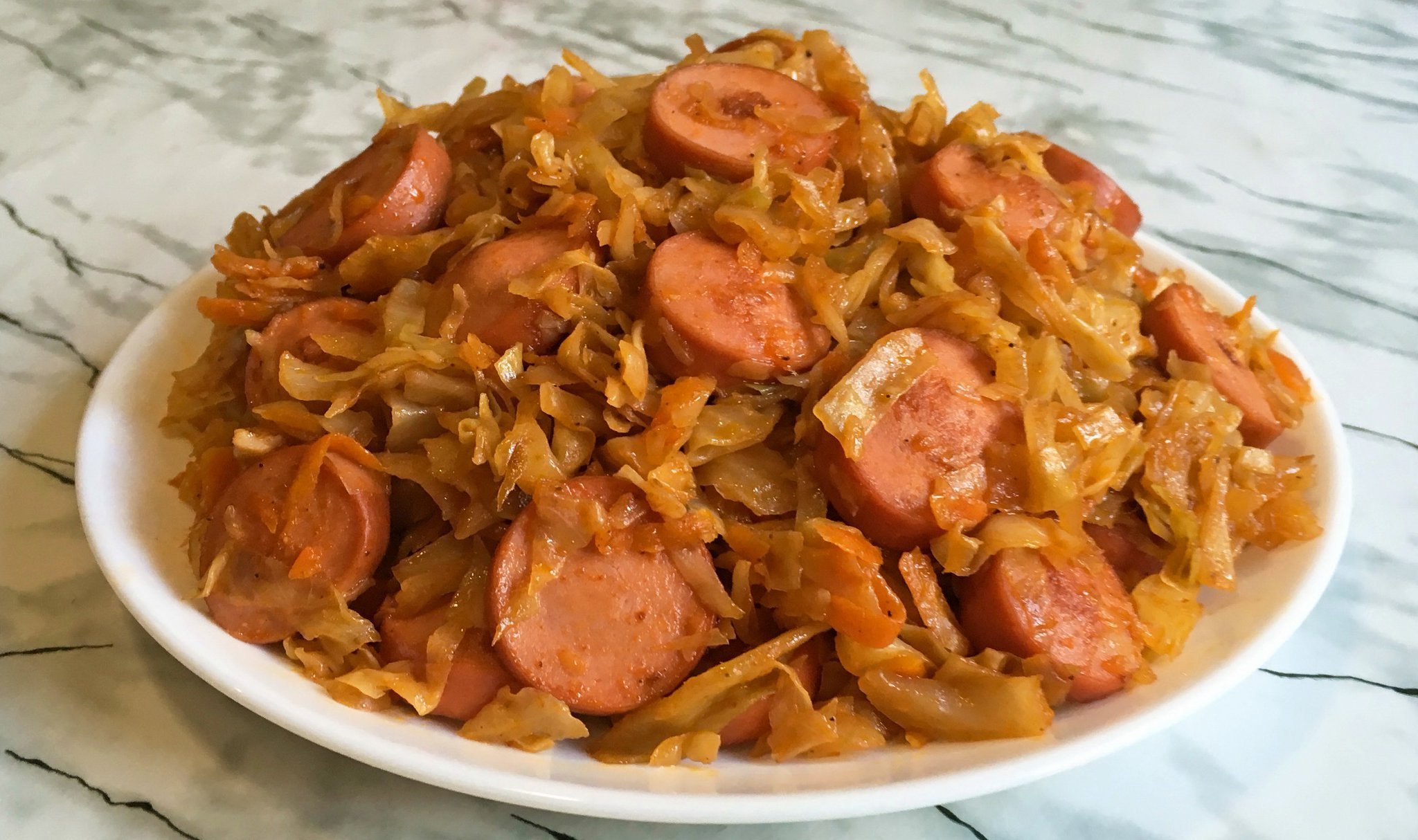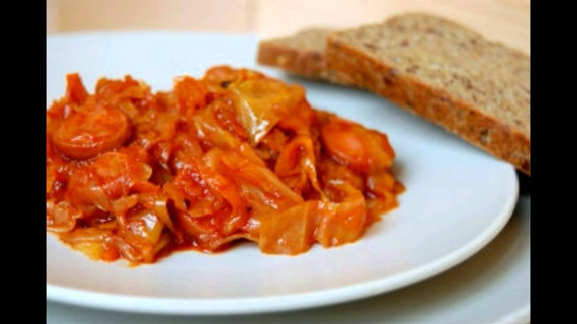 Жареная капуста с сосисками