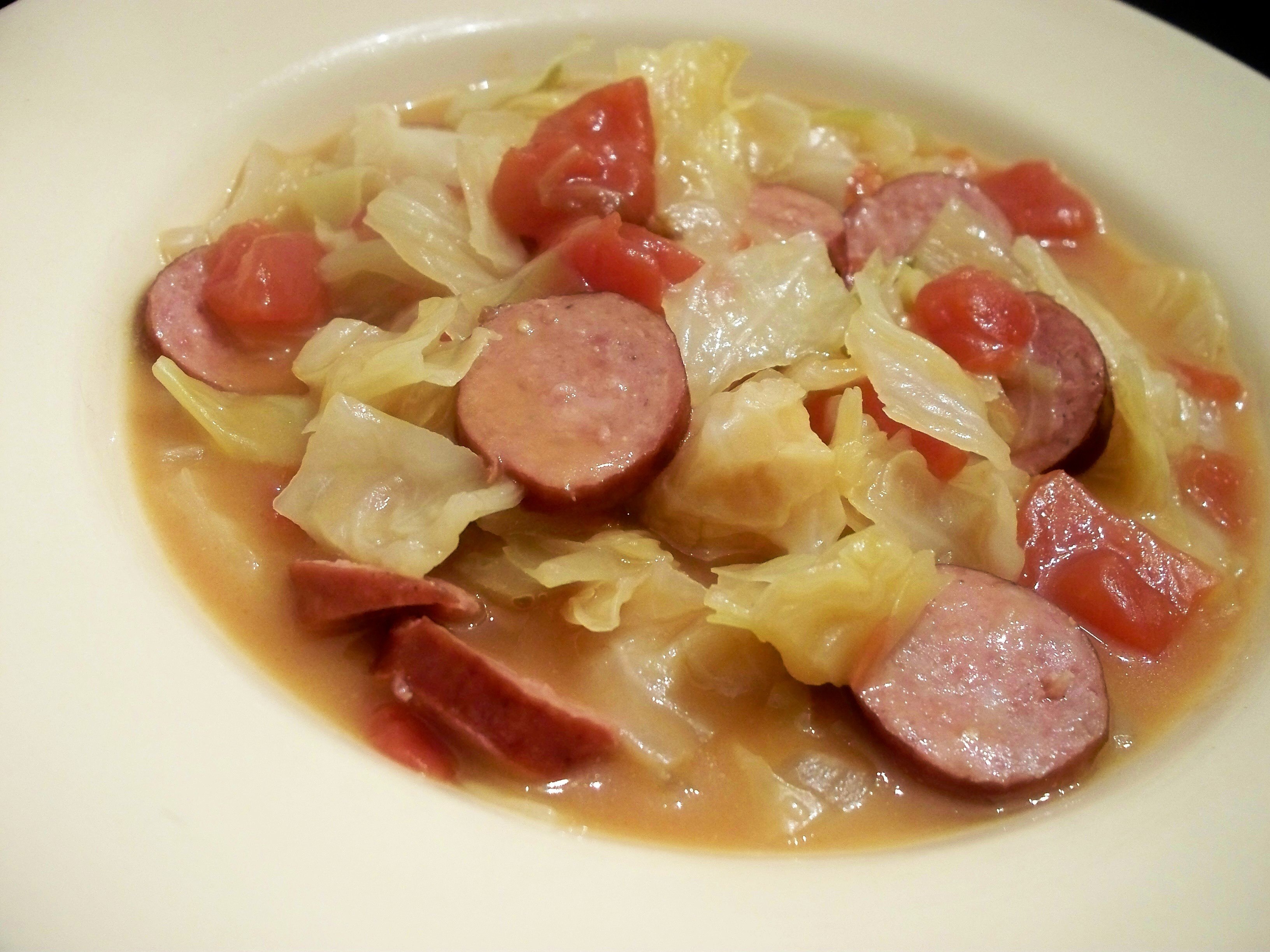 Солянка из капусты с сосисками