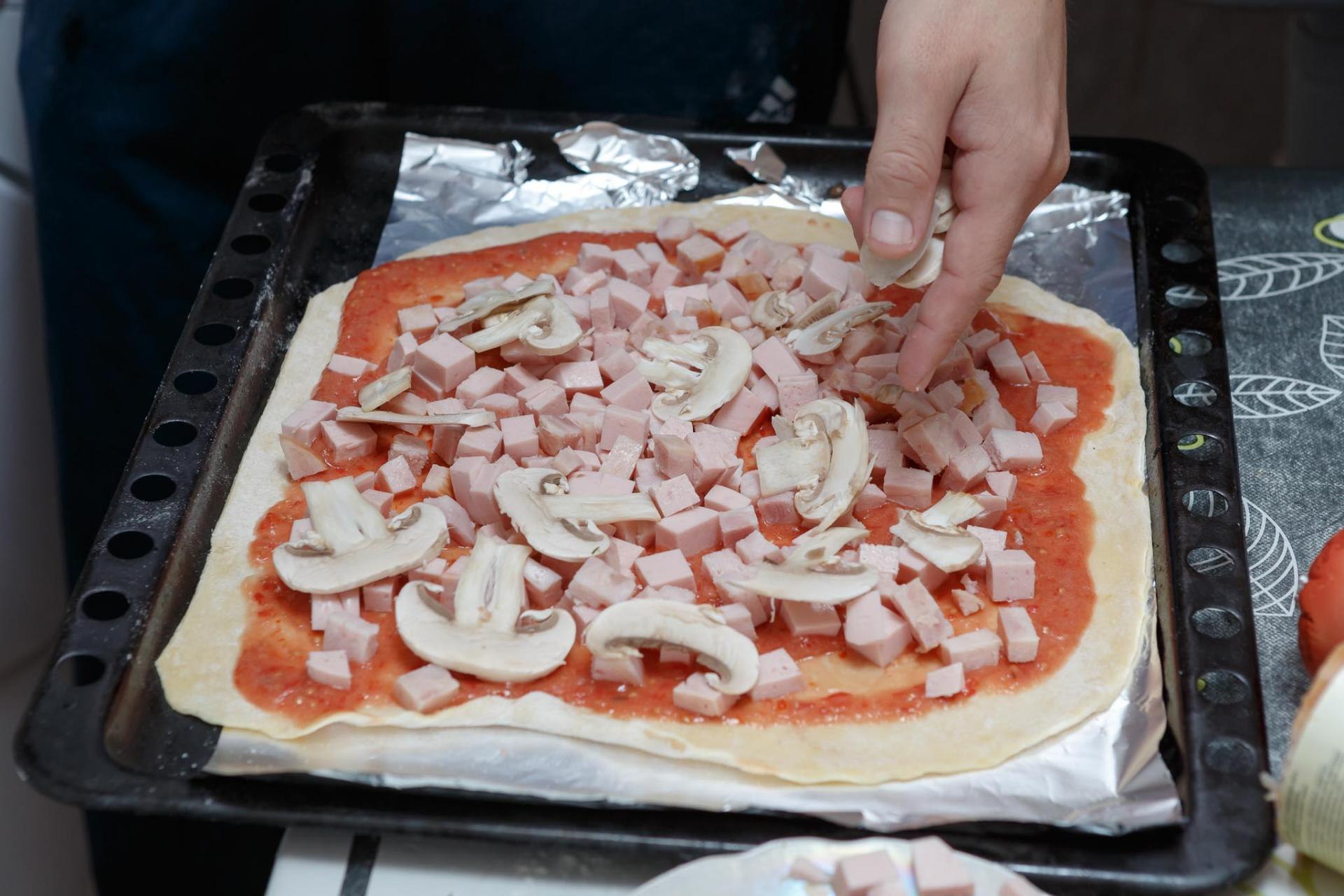 Укладка начинки на пиццу