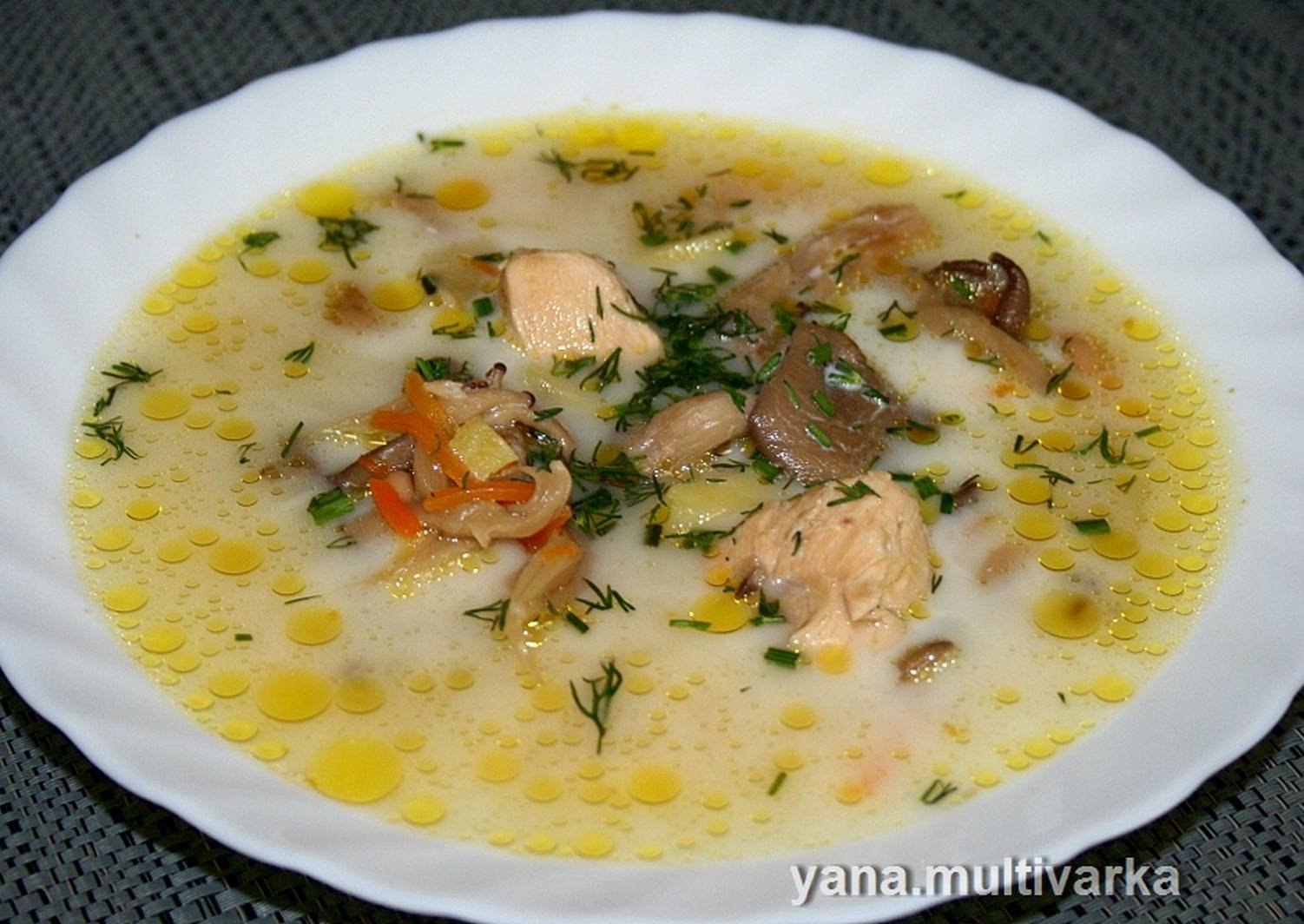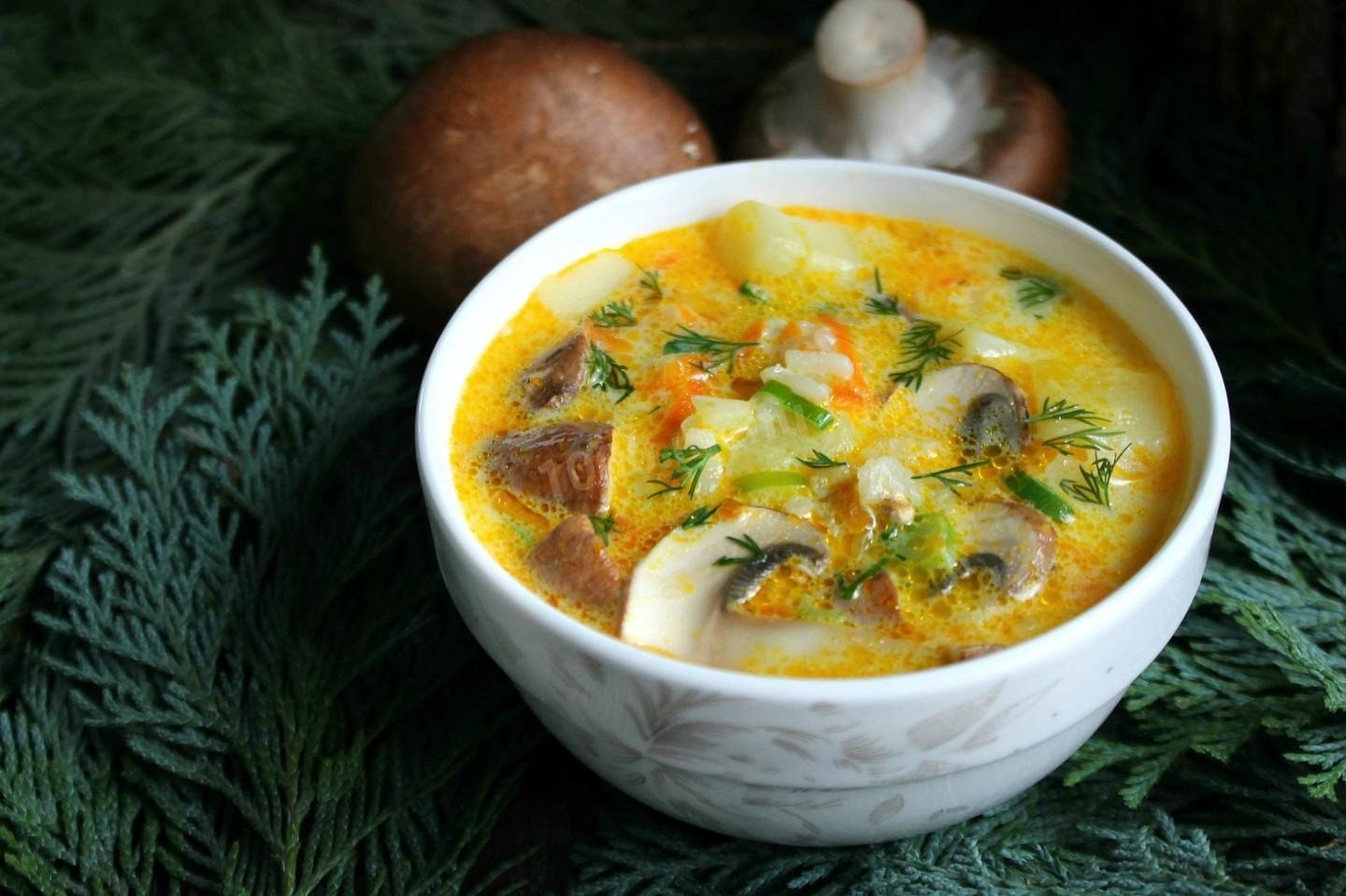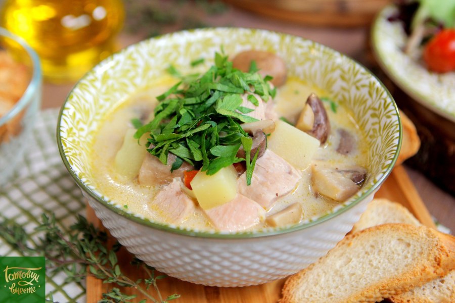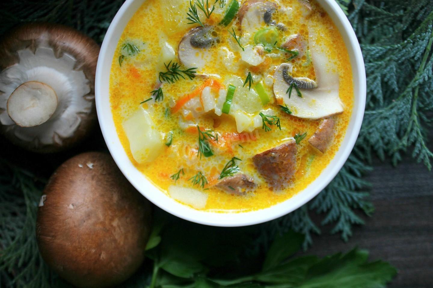 Грибной суп с плавленным сыром и курицей