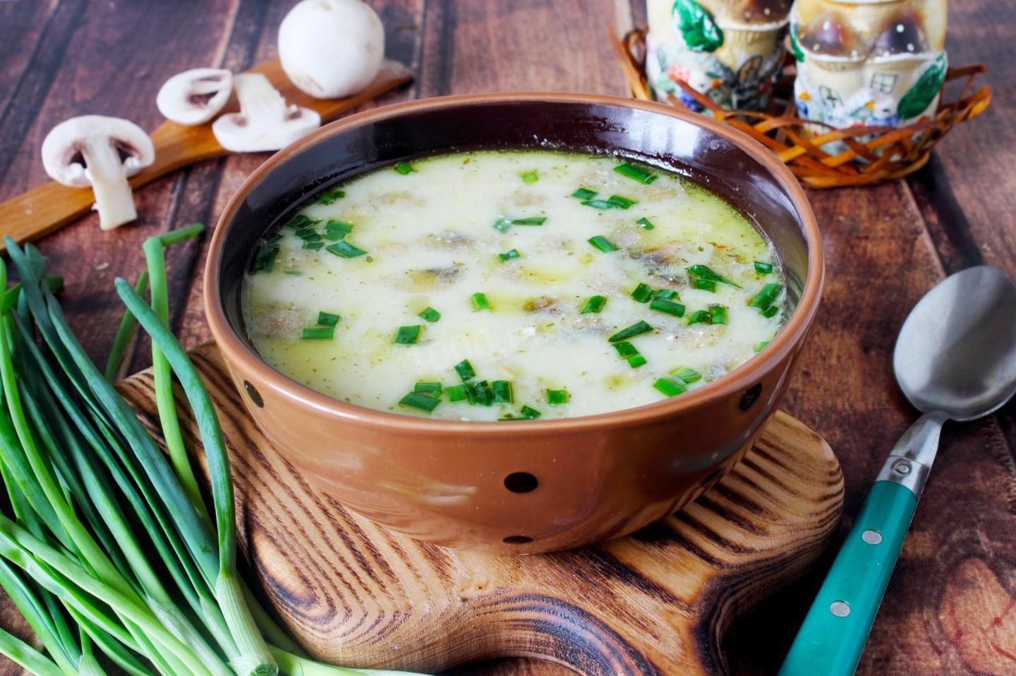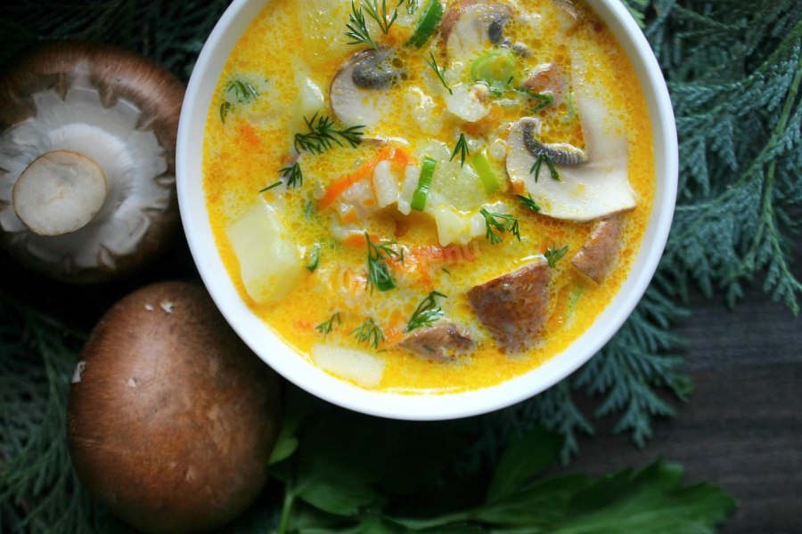 Сырный суп с шампиньонами и брокколи
