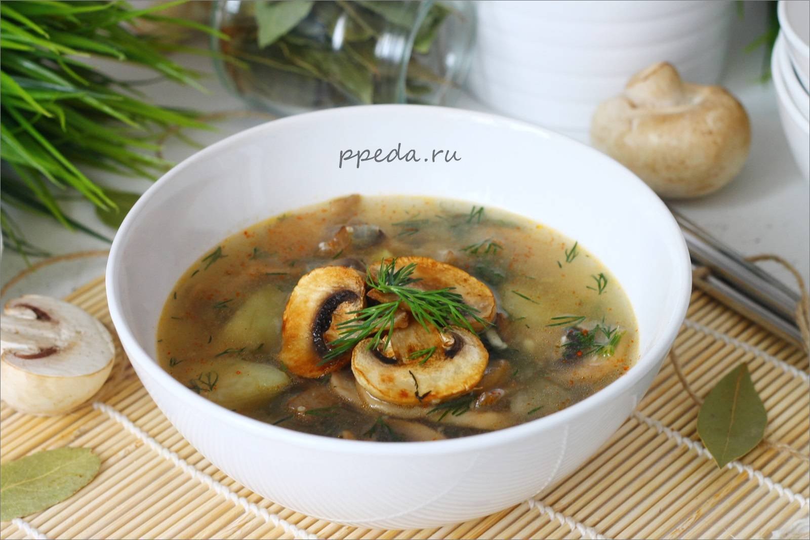 Суп грибной из шампиньонов с курицей и вермишелью