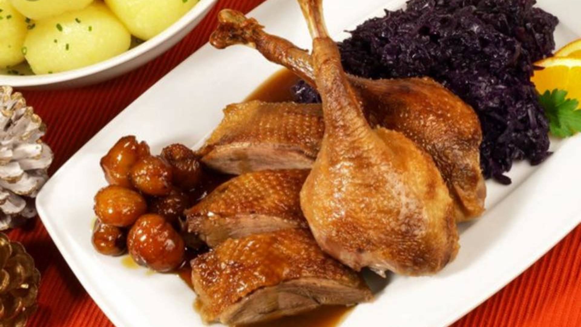 Жареный Гусь с красной капустой и кнедликами