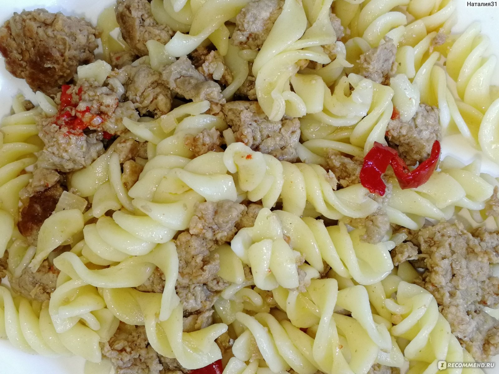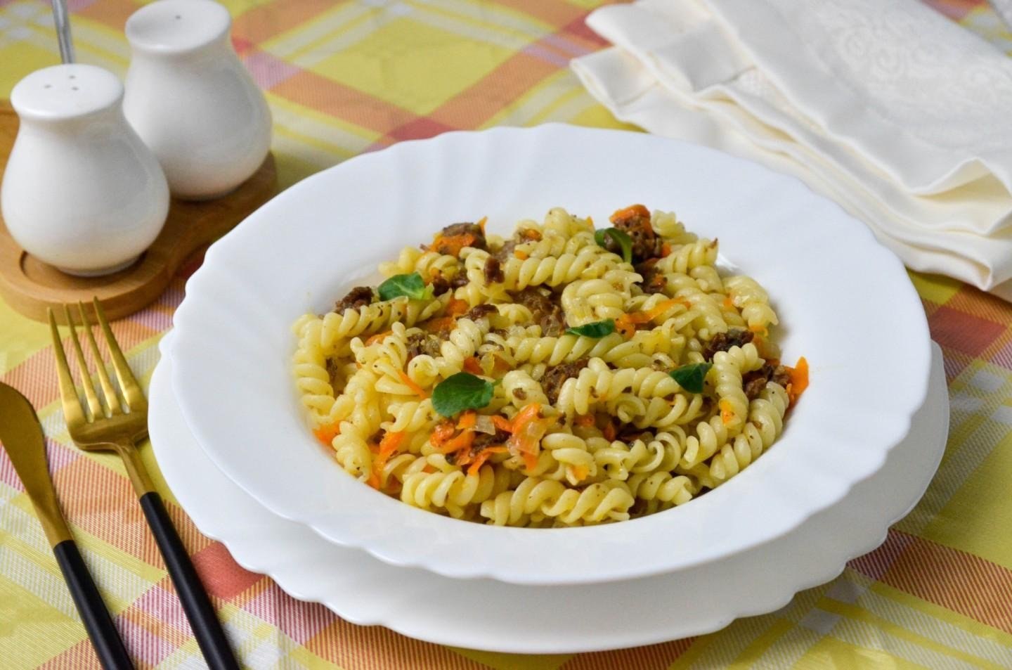 Макароны спиральки с тушенкой