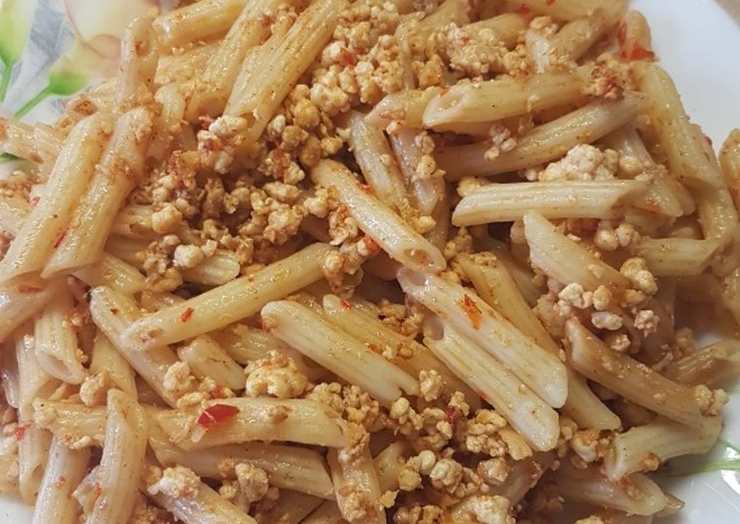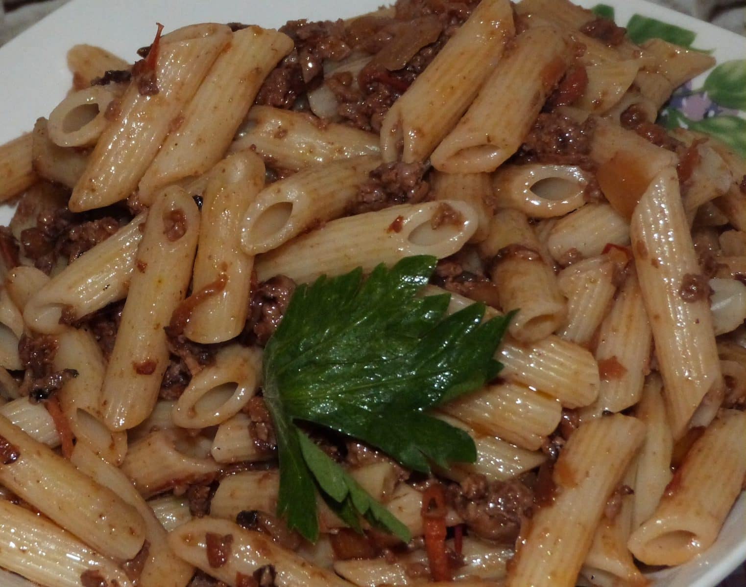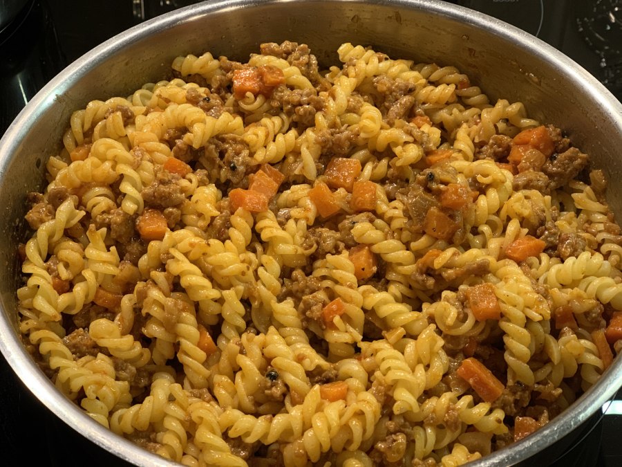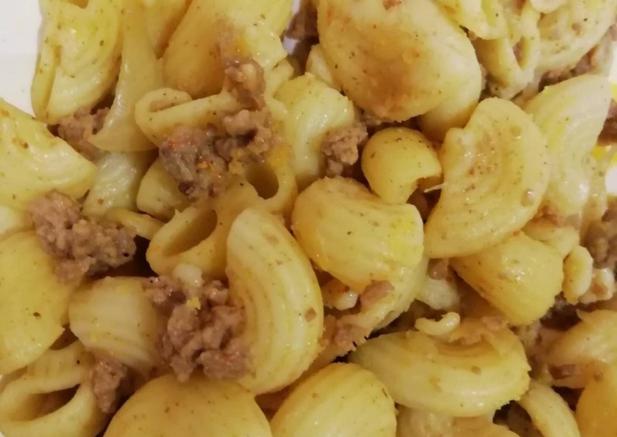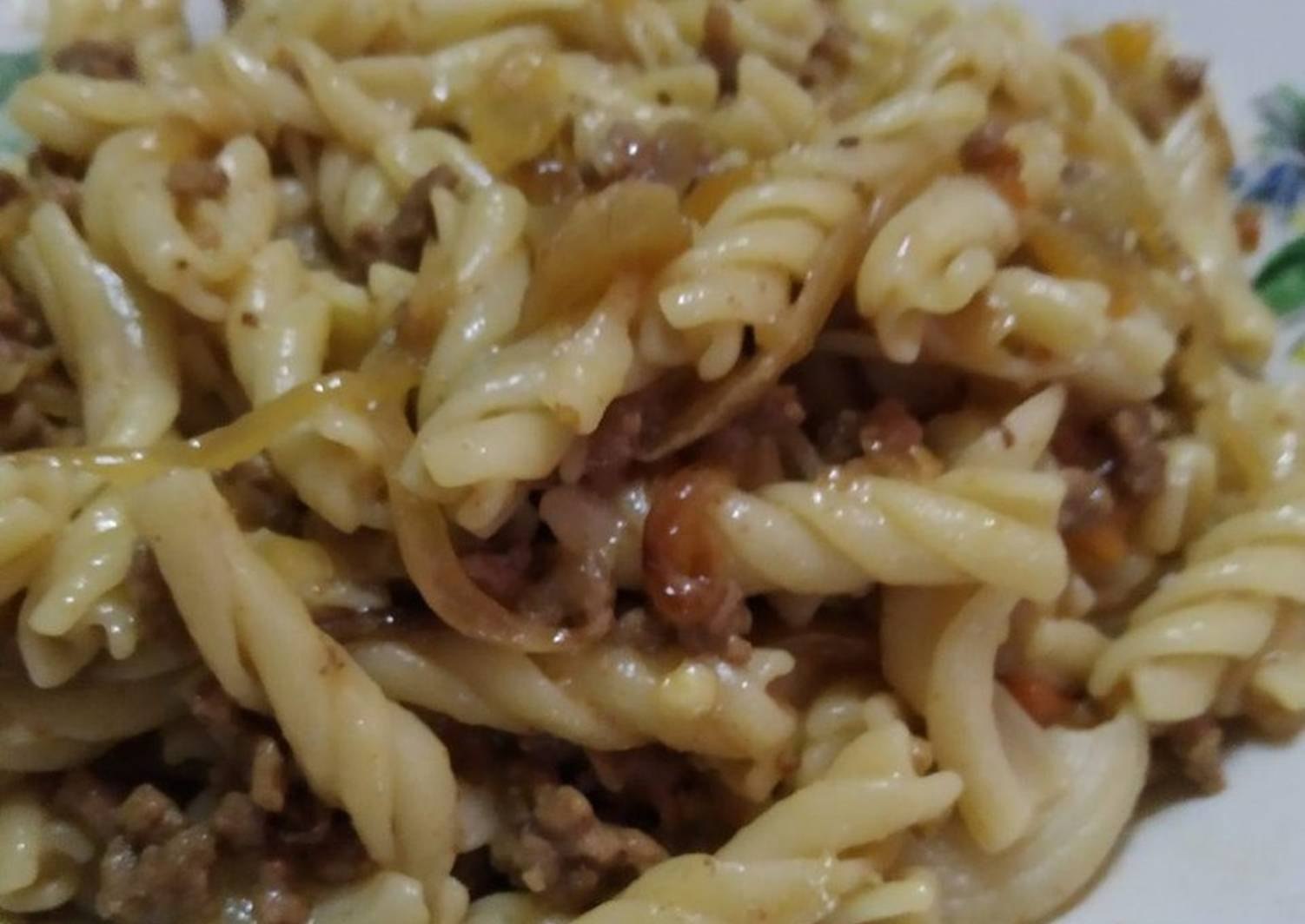 Рожки с фаршем на сковороде