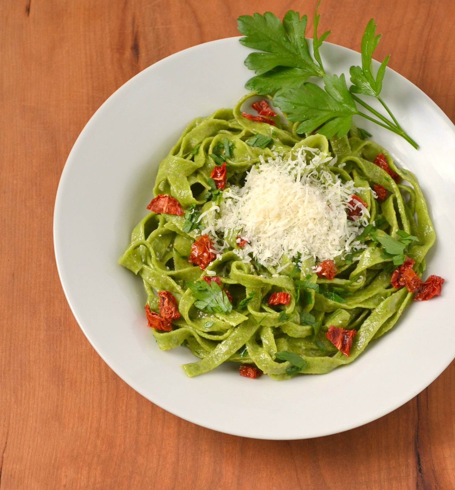 Зеленые тальятелле из шпината