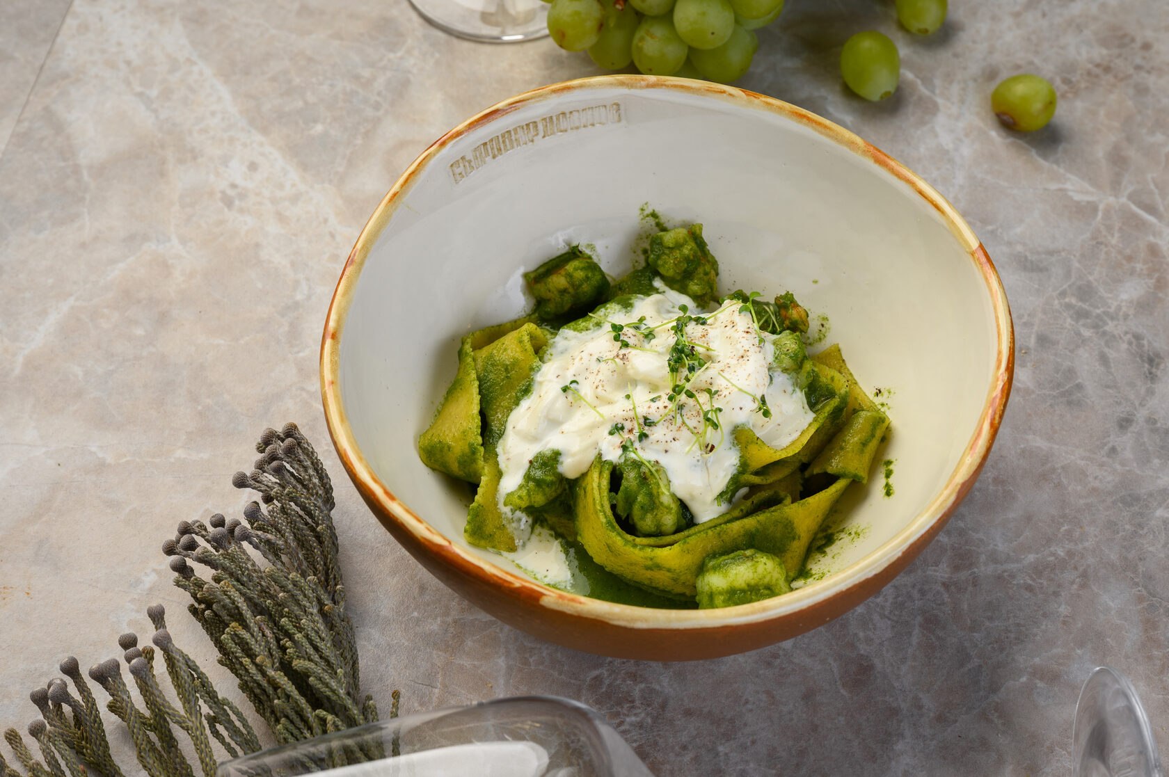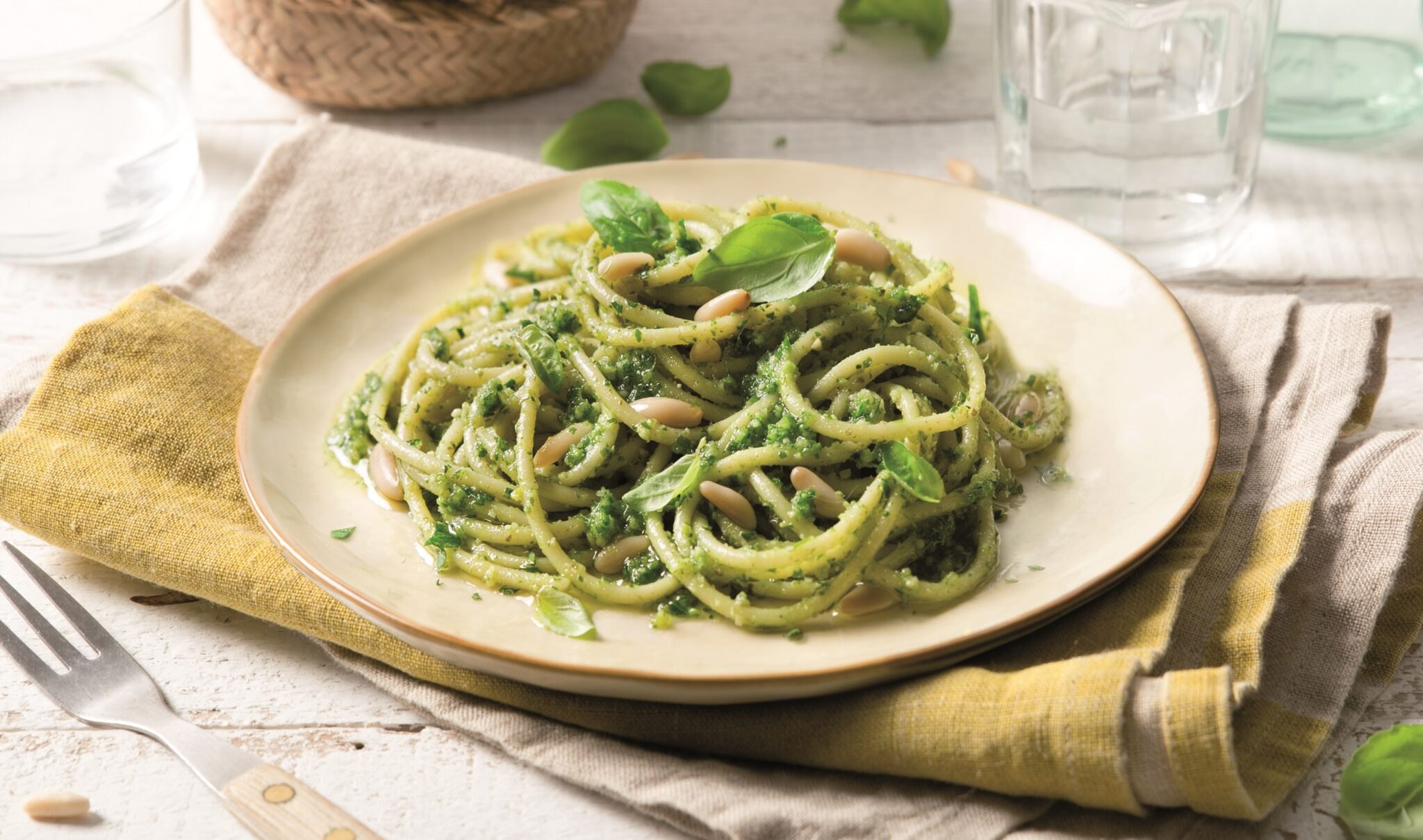 Паста со шпинатом и песто