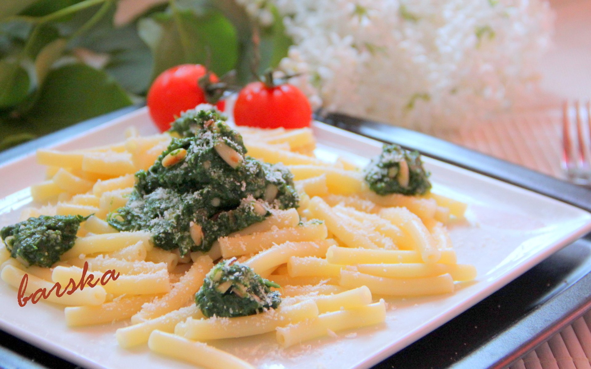 Паста из песто и шпинатом