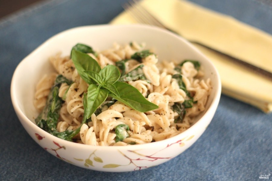 Макароны со шпинатом