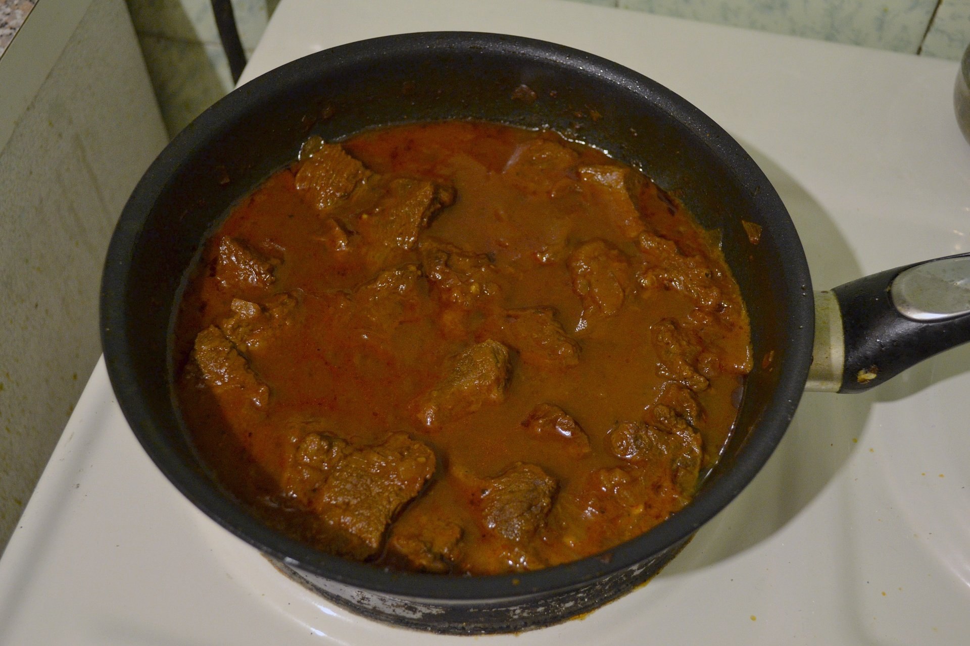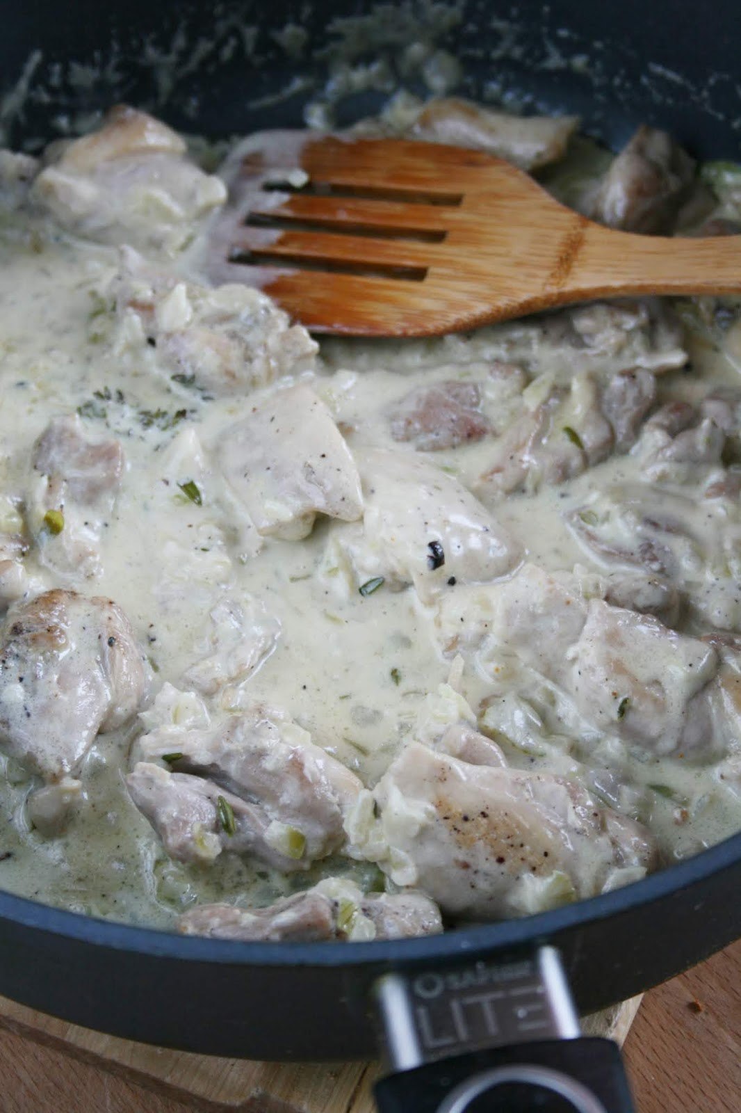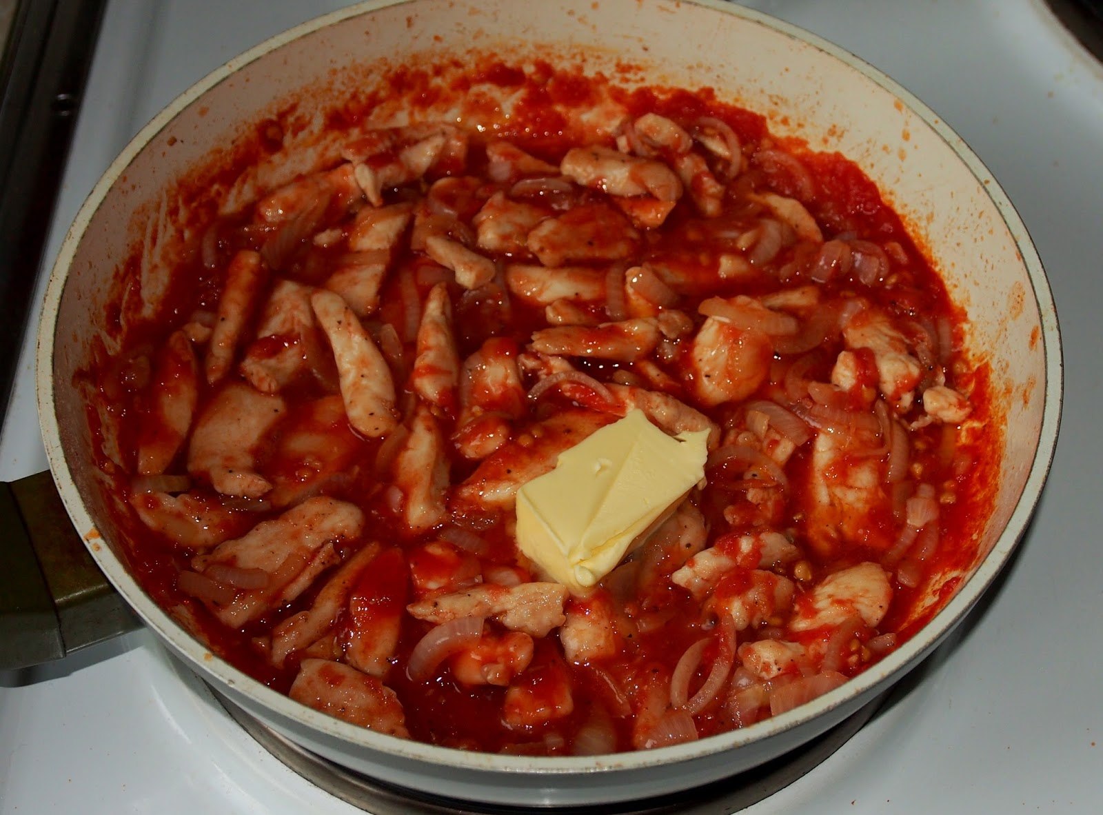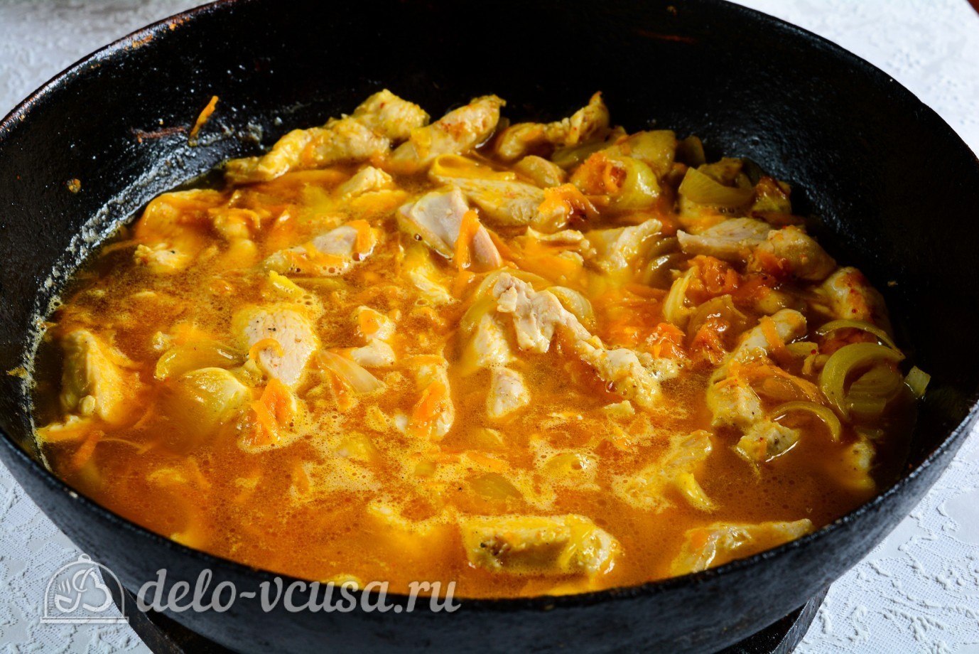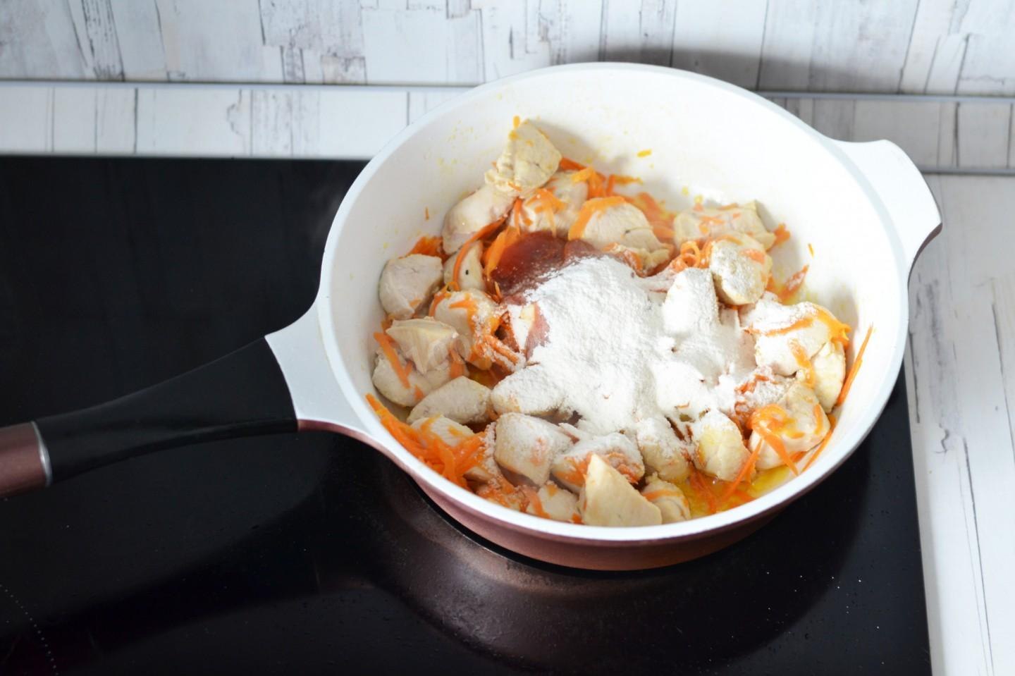 Гуляш из курицы со сметаной на сковороде