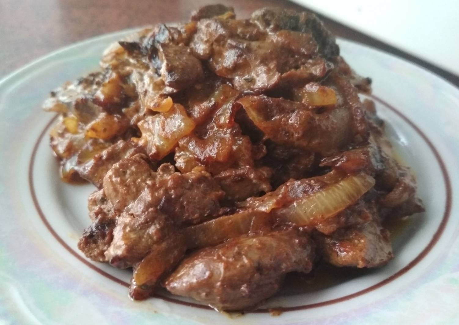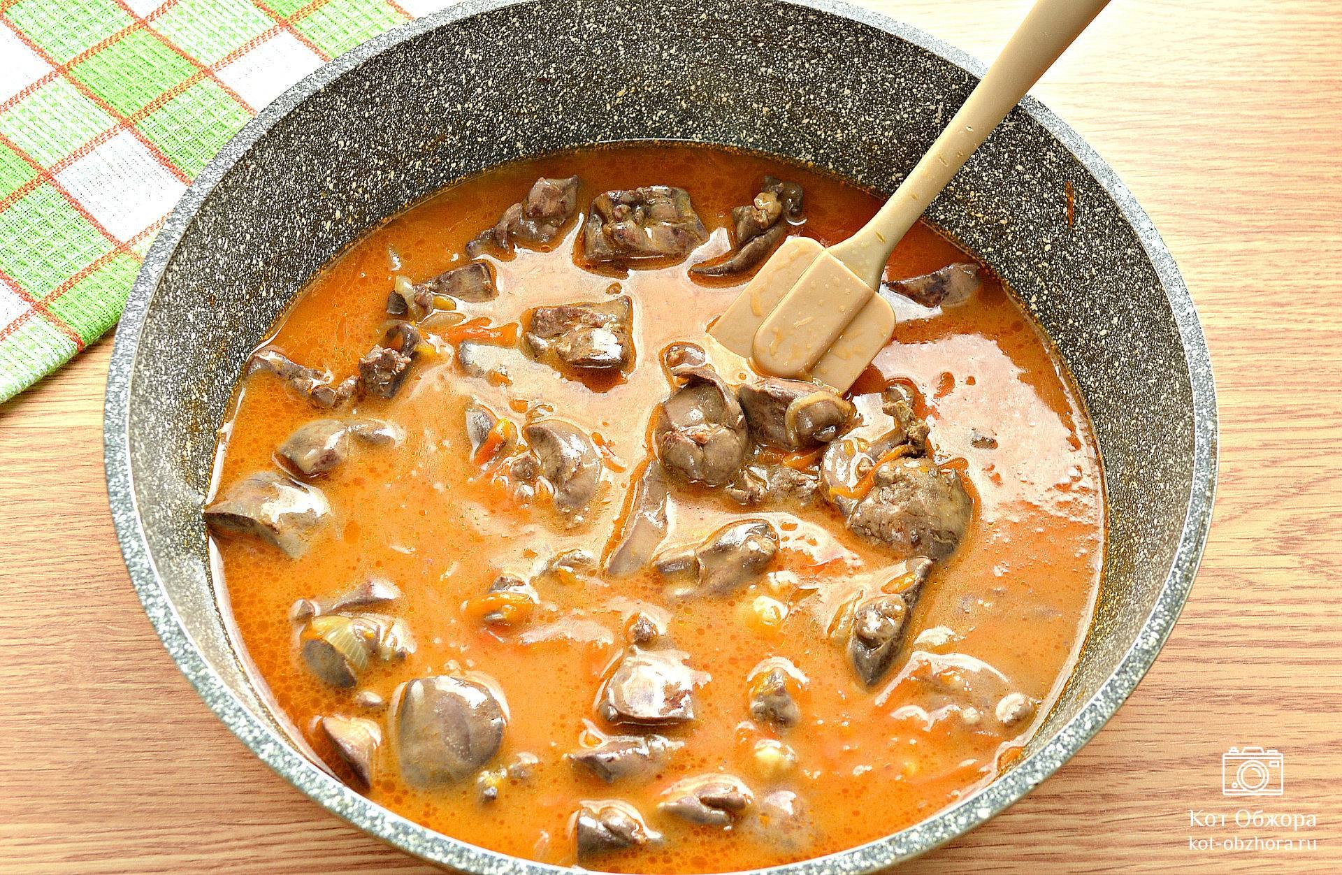 Гуляш из куриной печени с подливкой на сковороде