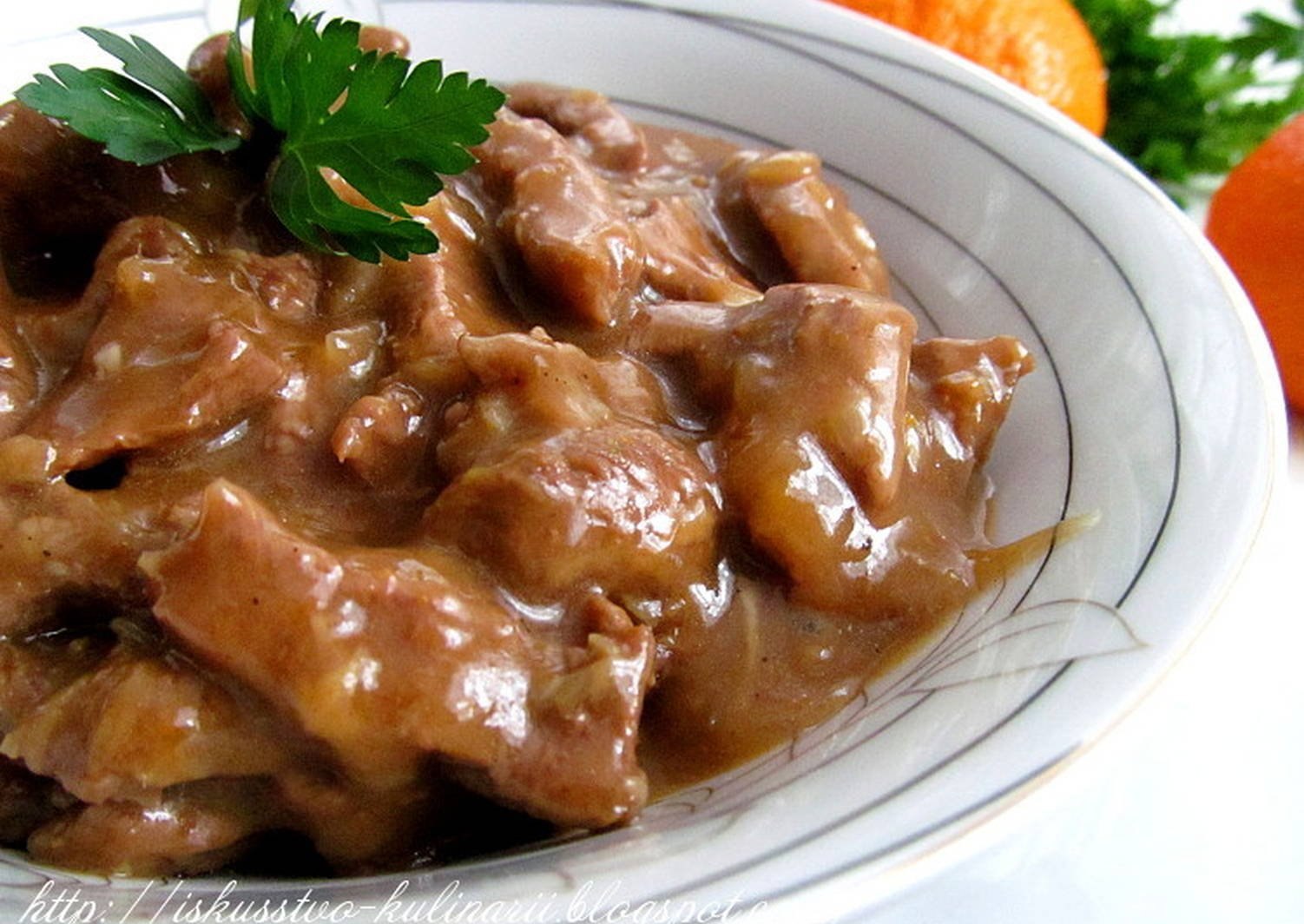 Печень по-строгановски классический