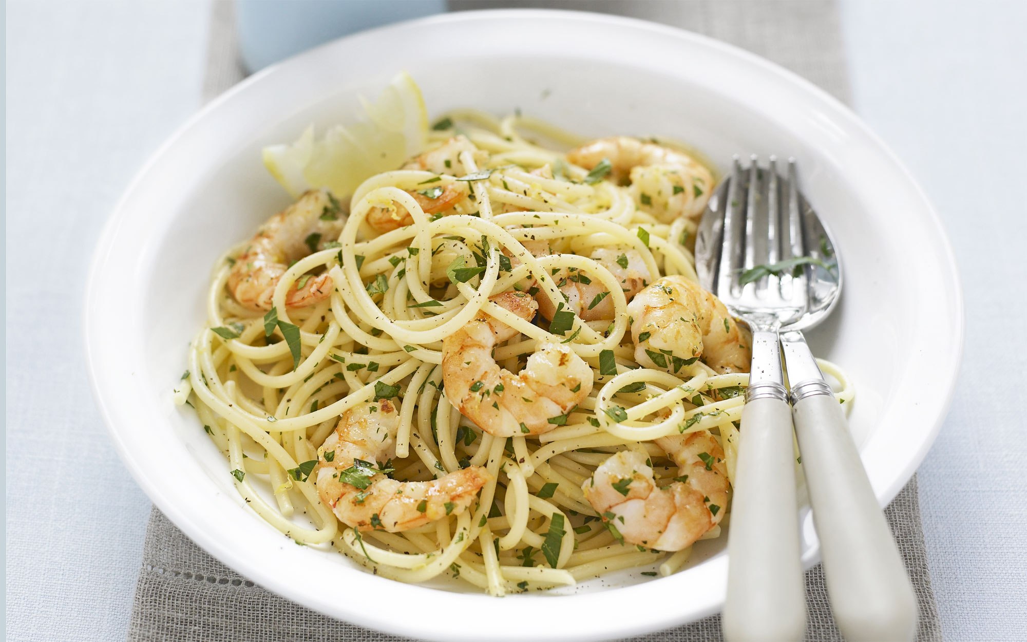 Спагетти с креветками и петрушкой