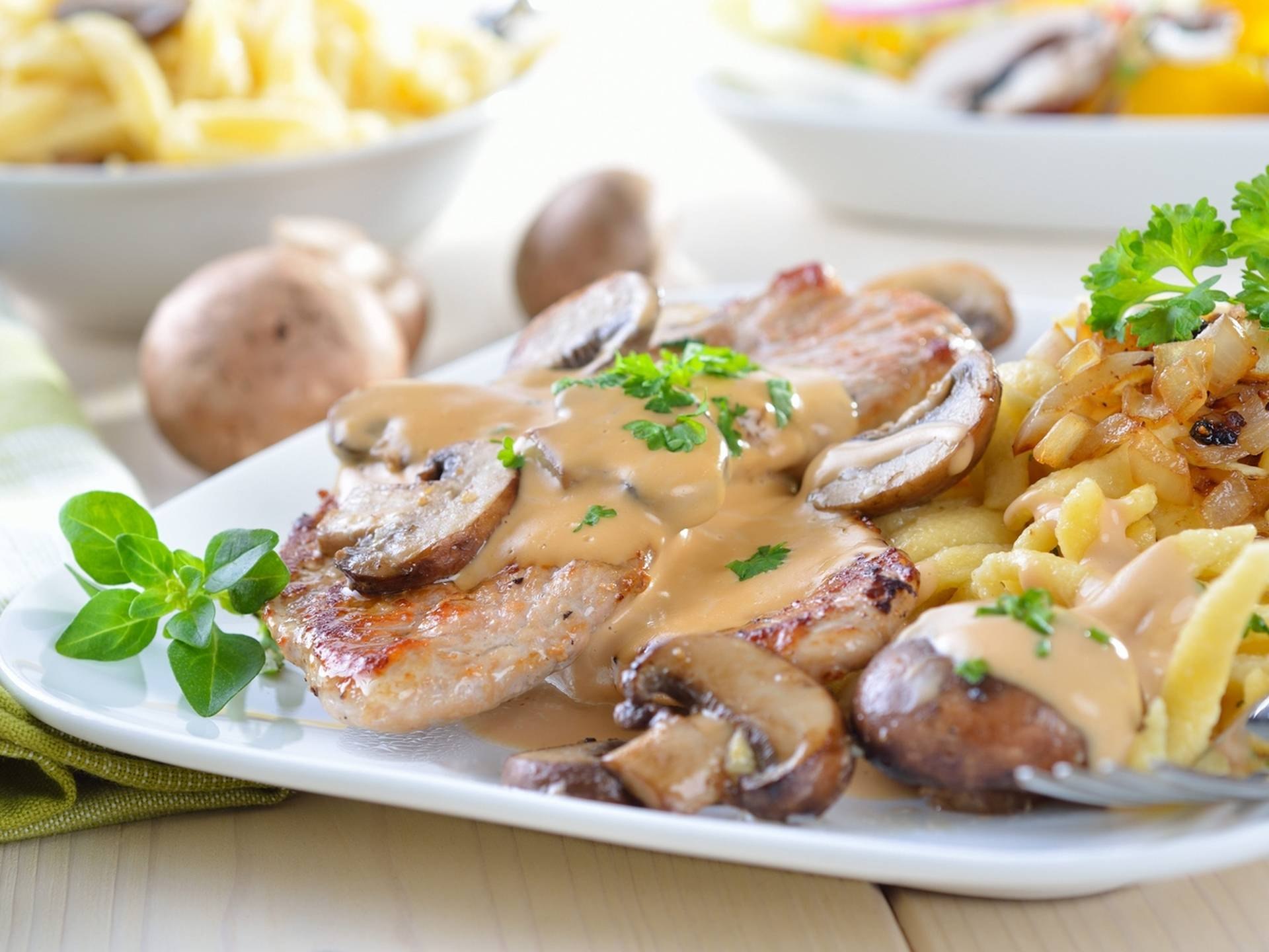 Свинина с грибами в сливочном соусе