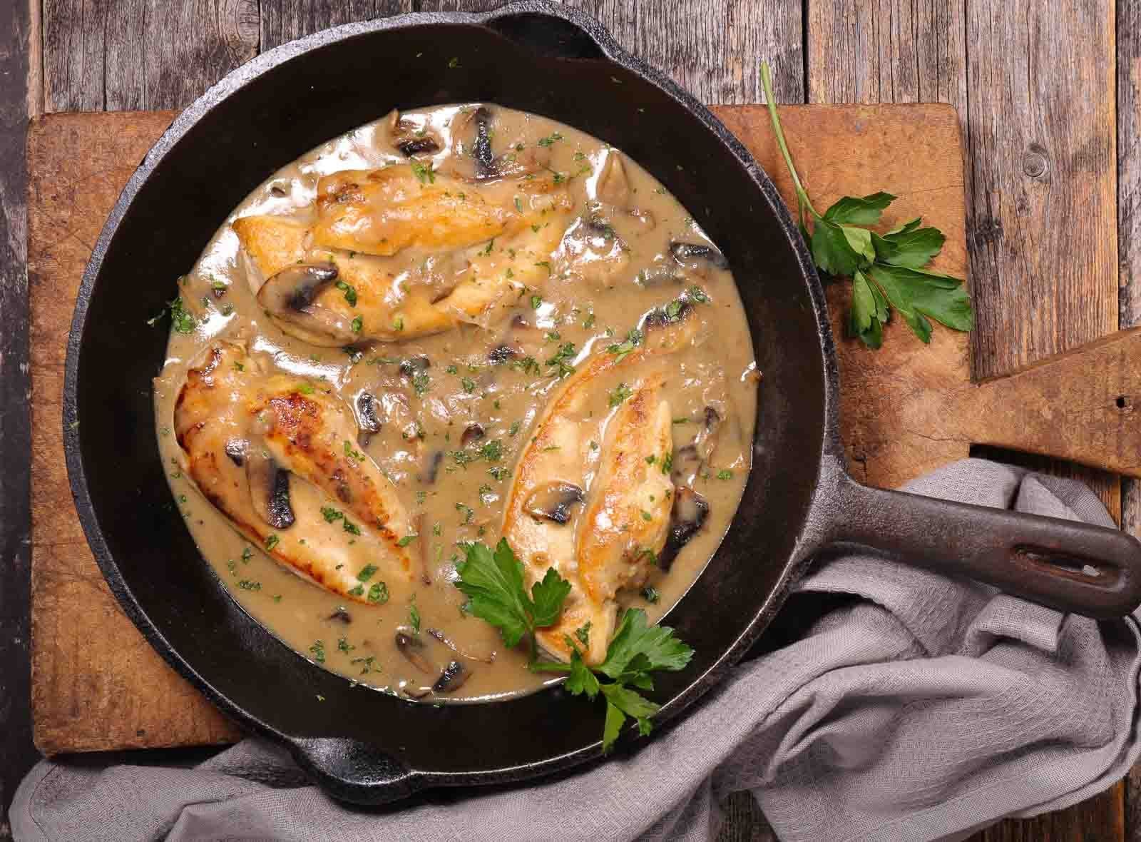 Куриная грудка с грибами в сметанном соусе