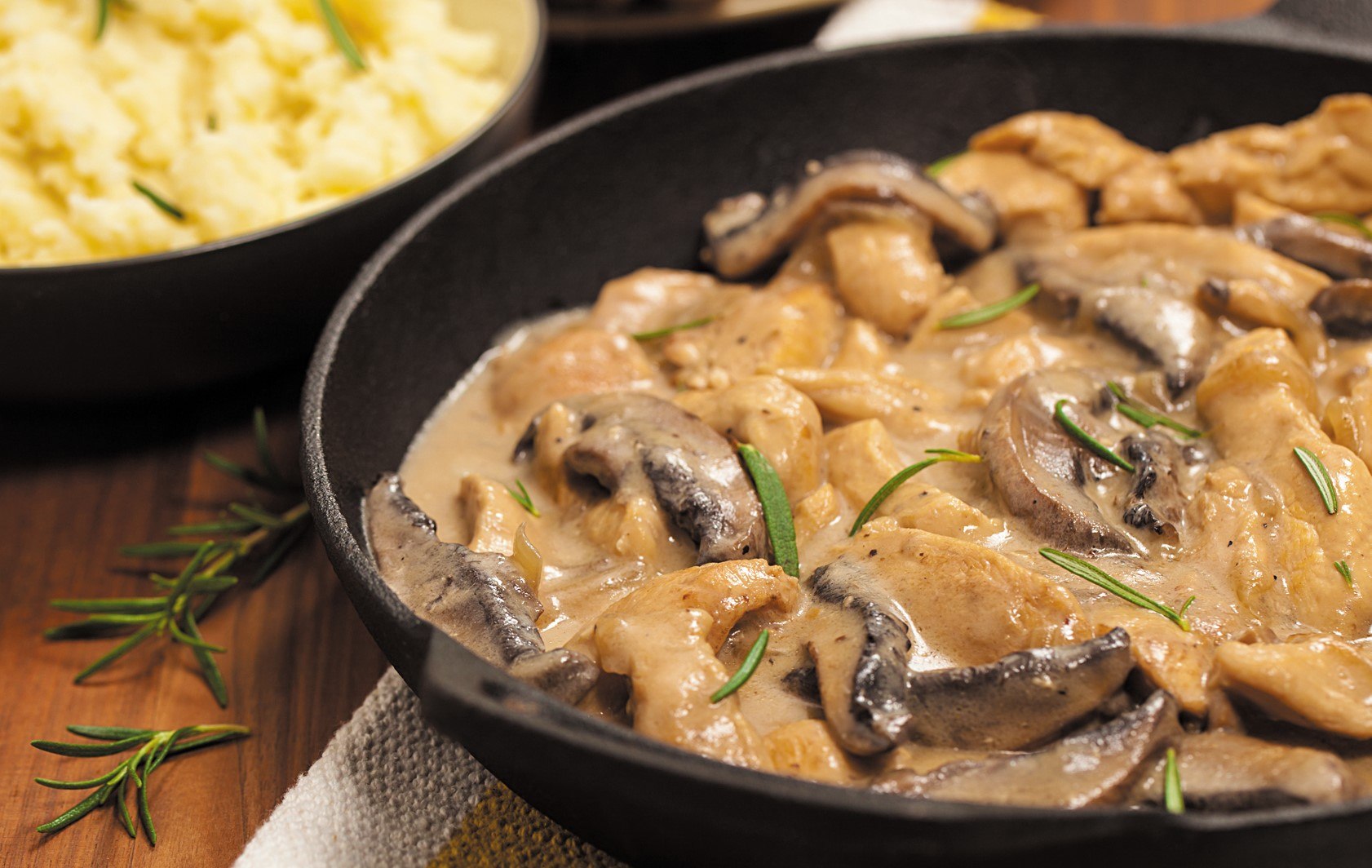 Курица с шампиньонами в сметанном соусе на сковороде