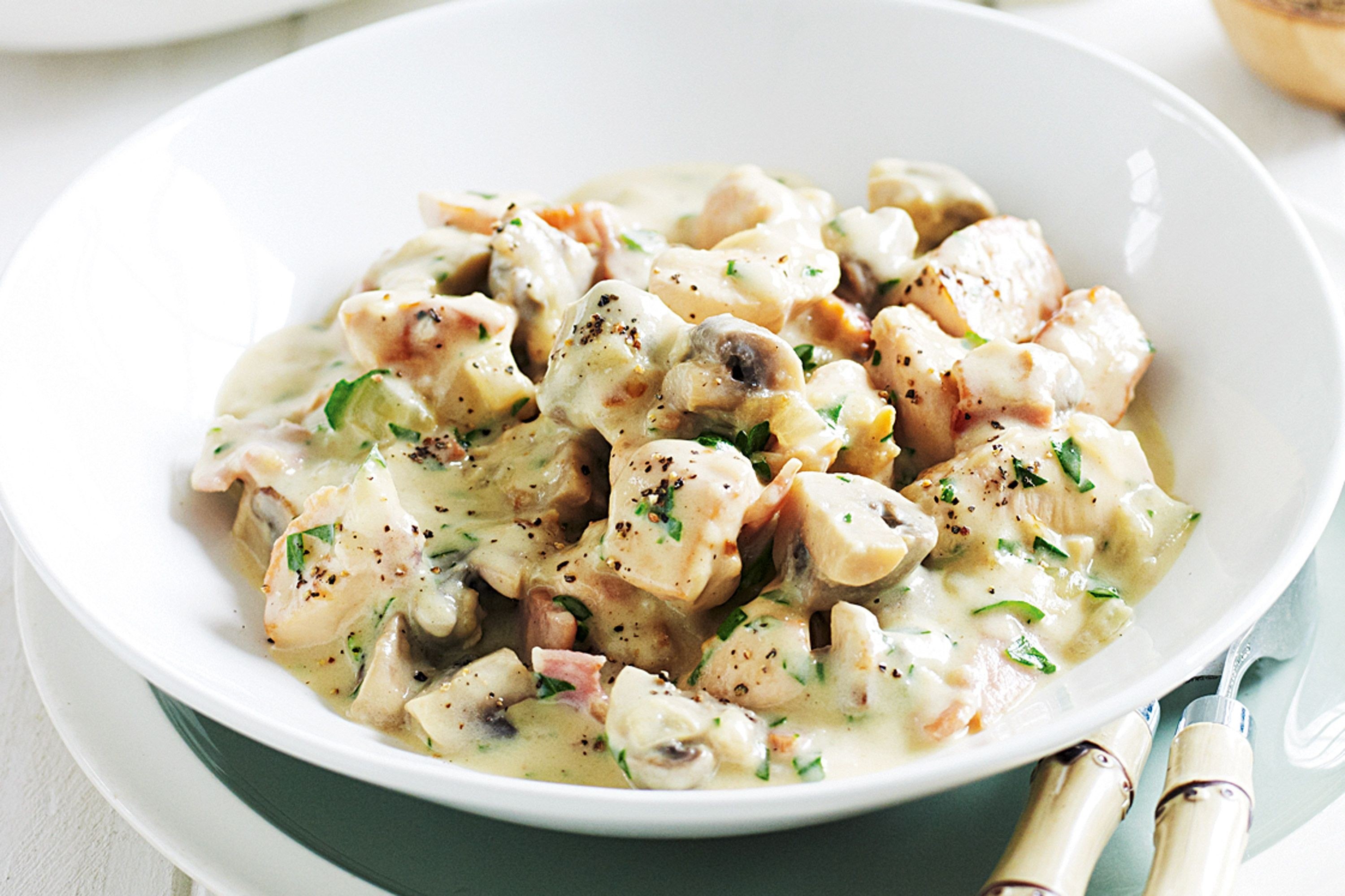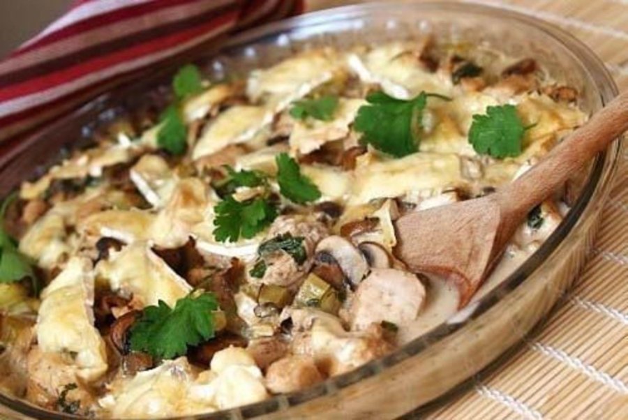 Курица в соусе бешамель с грибами