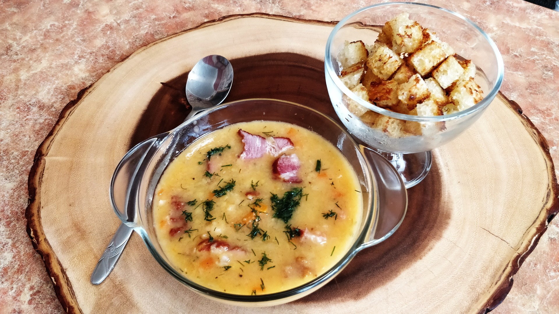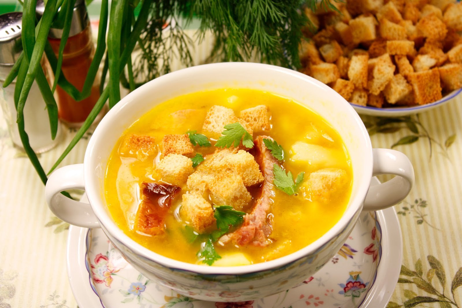 Гороховый крем суп с копченостями