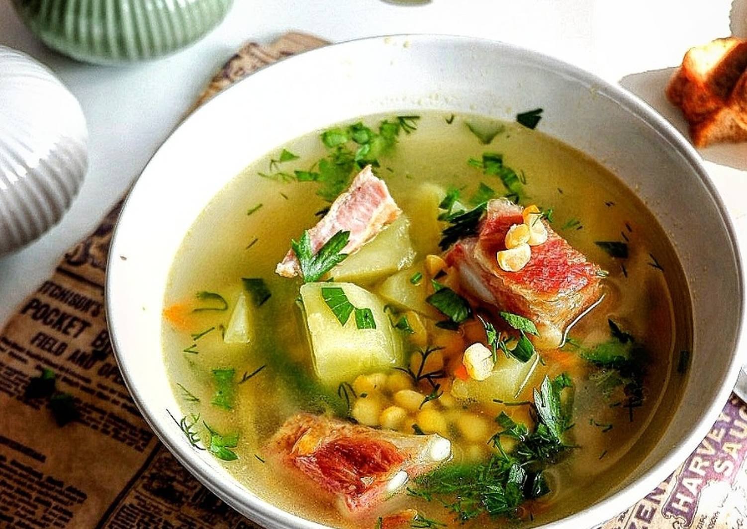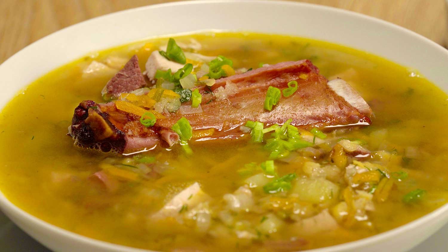 Гороховый суп с копченостями ребрышками