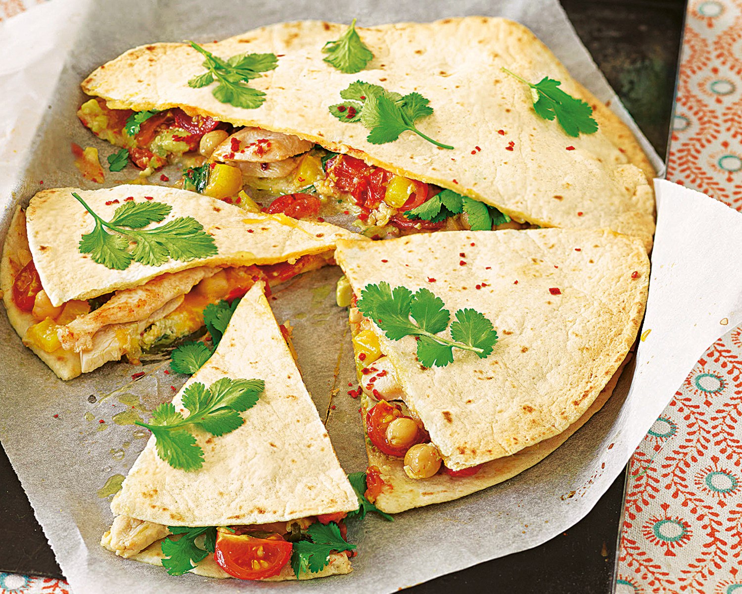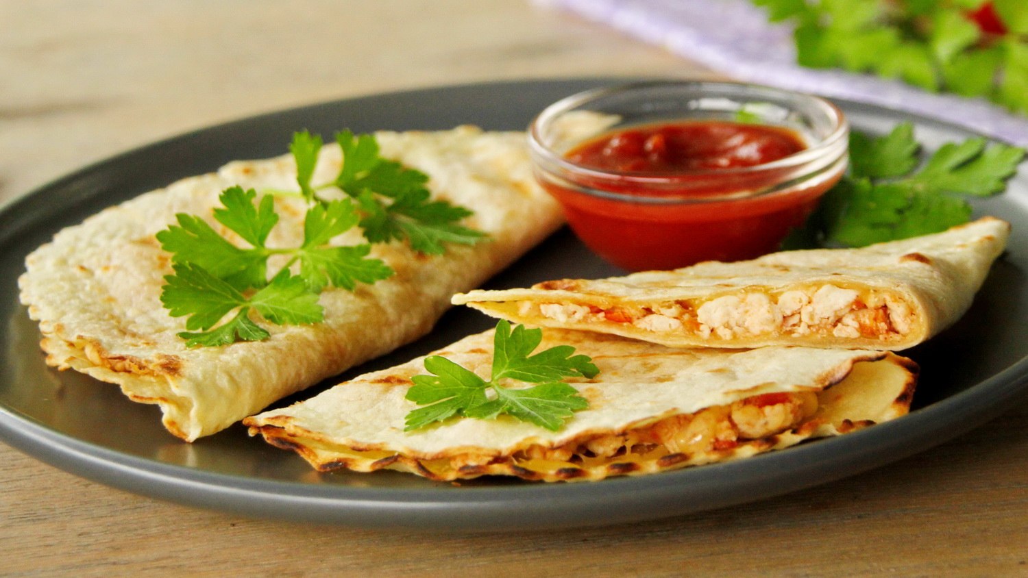 Кесадилья с курицей и помидорами