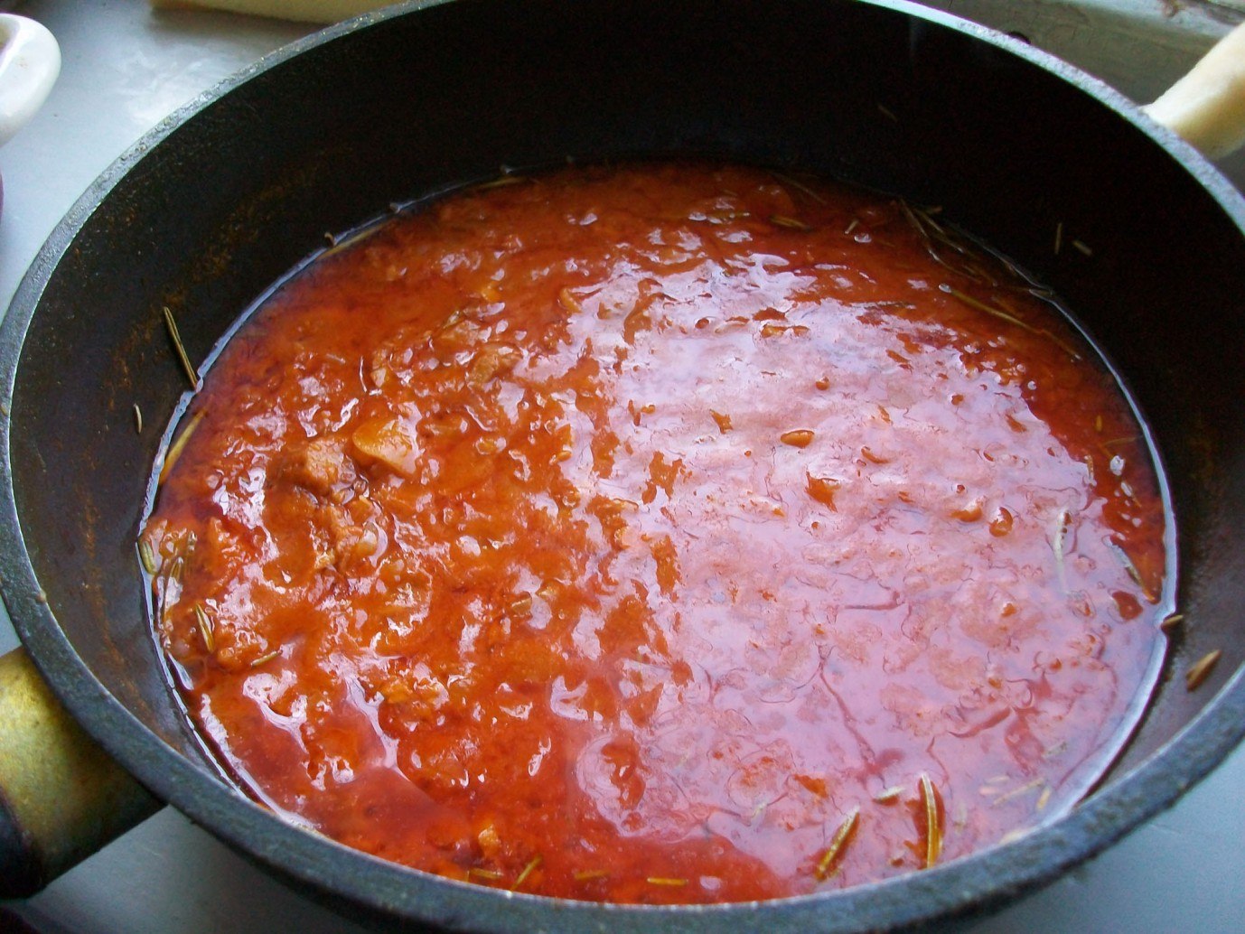 Томатный соус в кастрюле