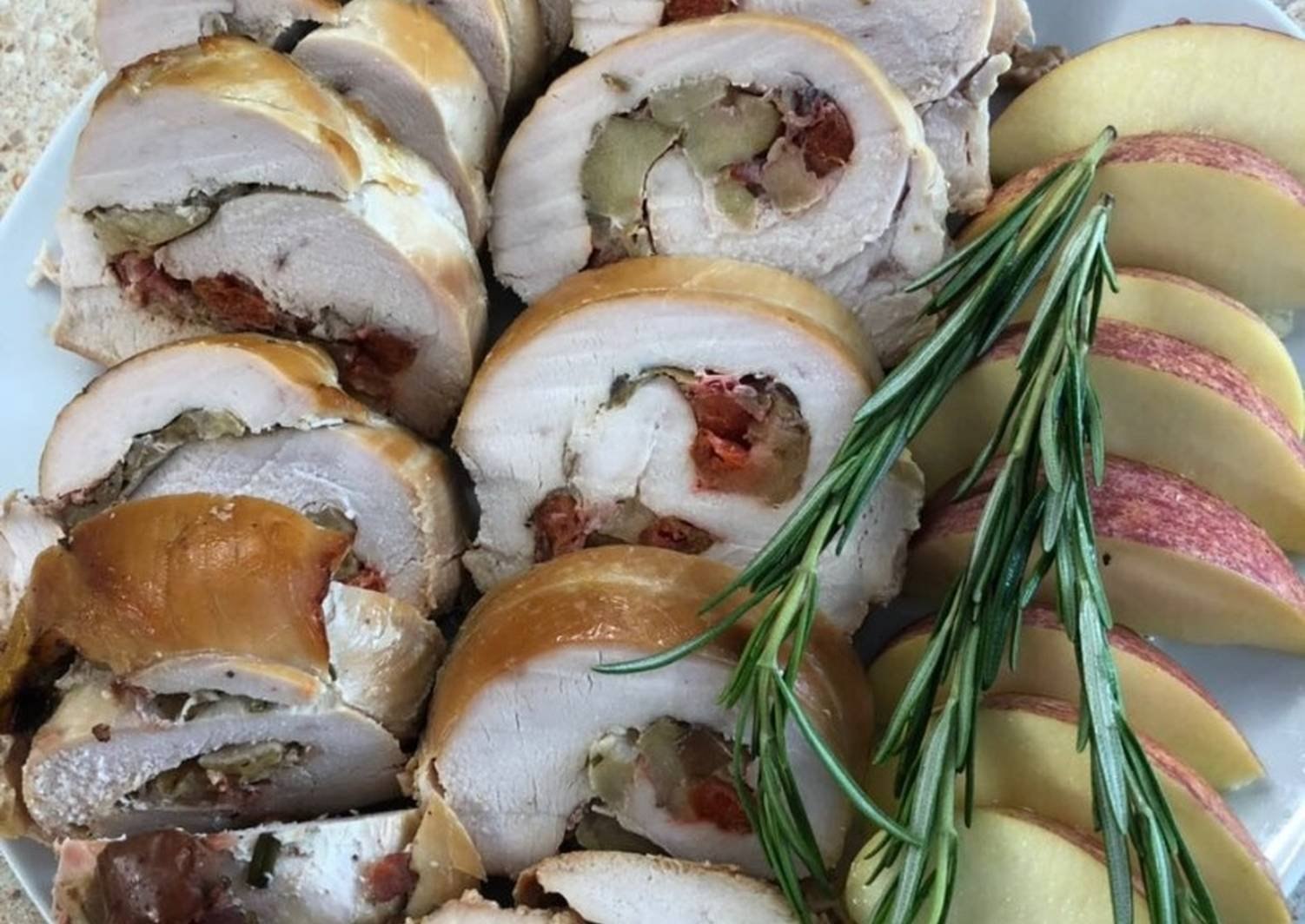 Рулет из индейки с курагой и черносливом
