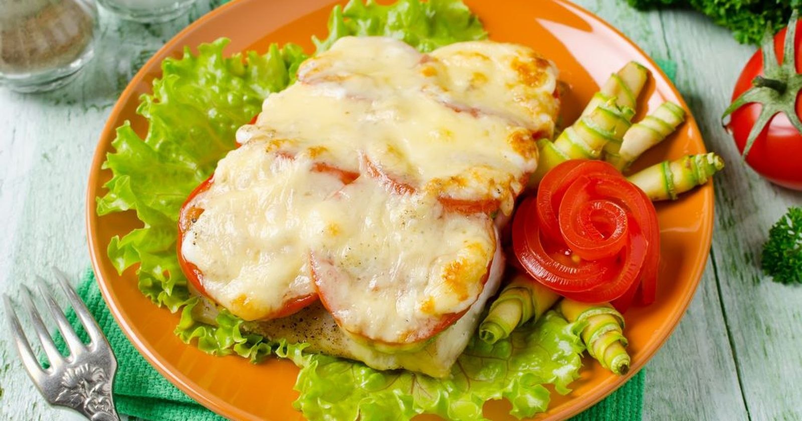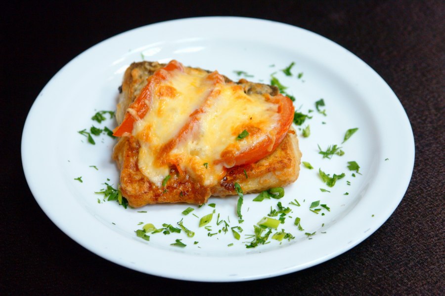 Филе под сыром с помидорами