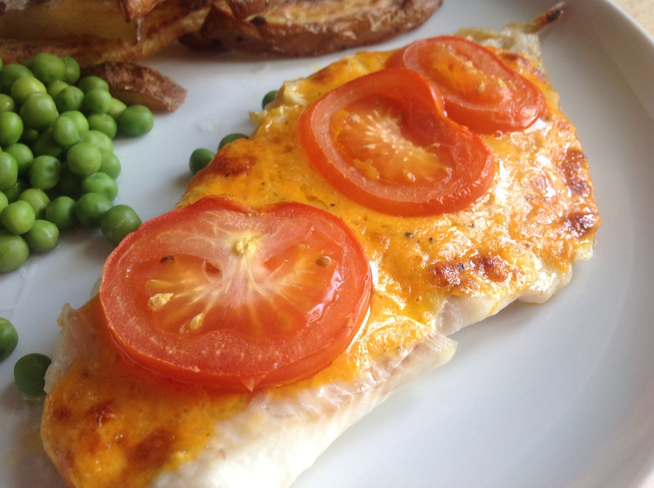 Треска запеченная с сыром и помидорами