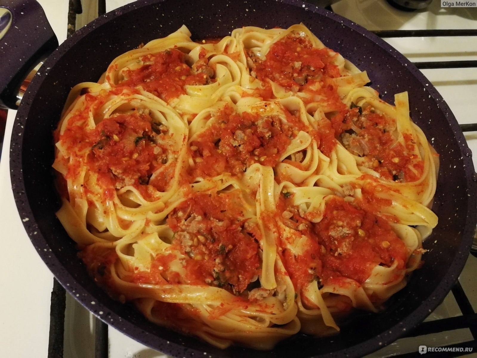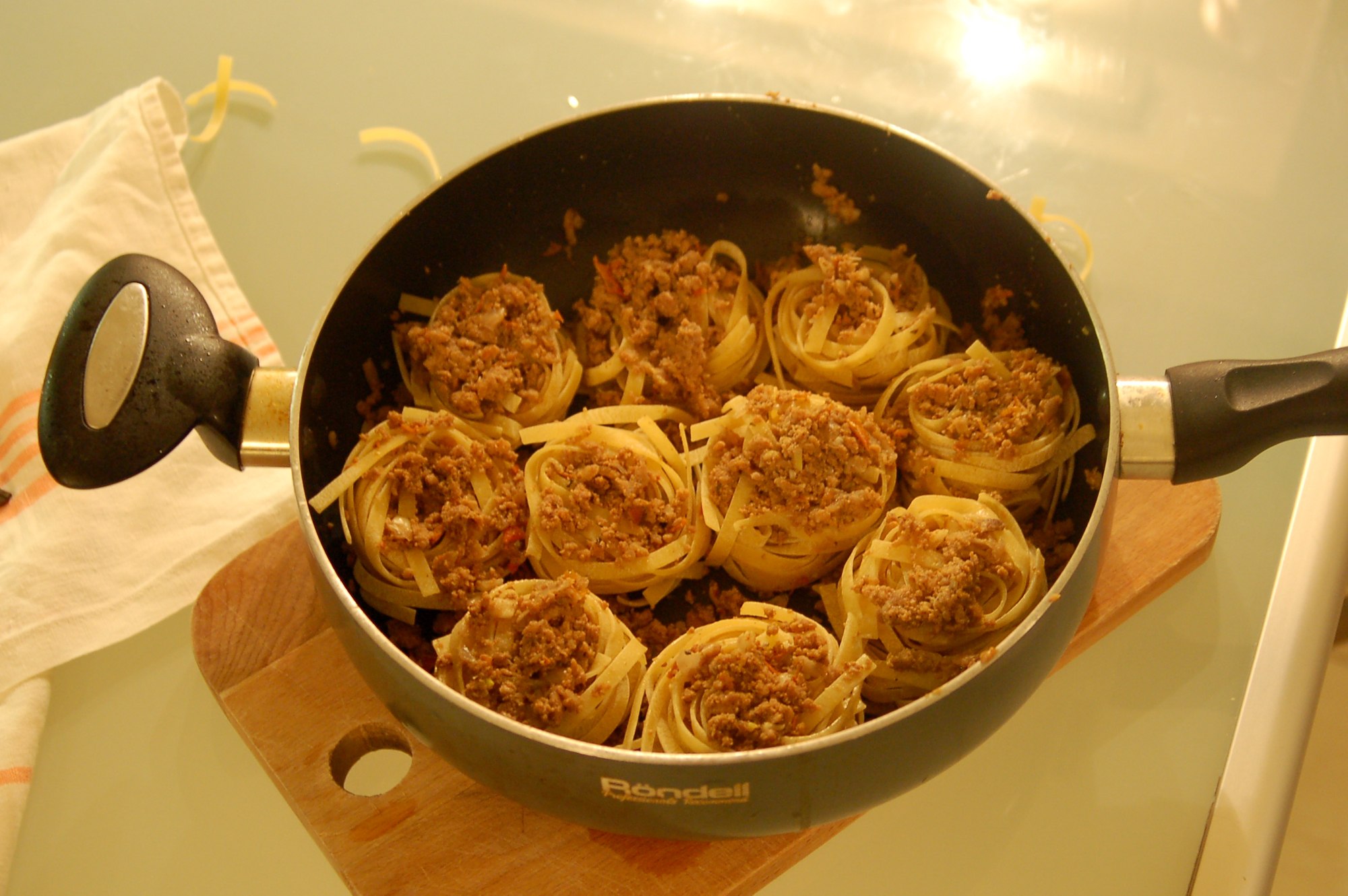 Макароны гнёзда с фаршем на сковороде