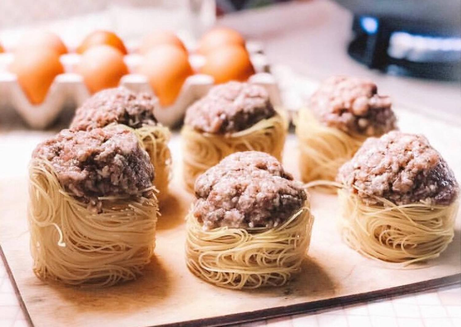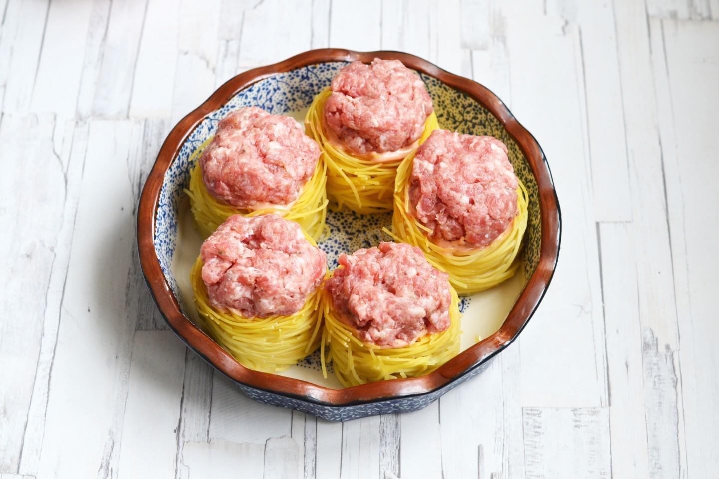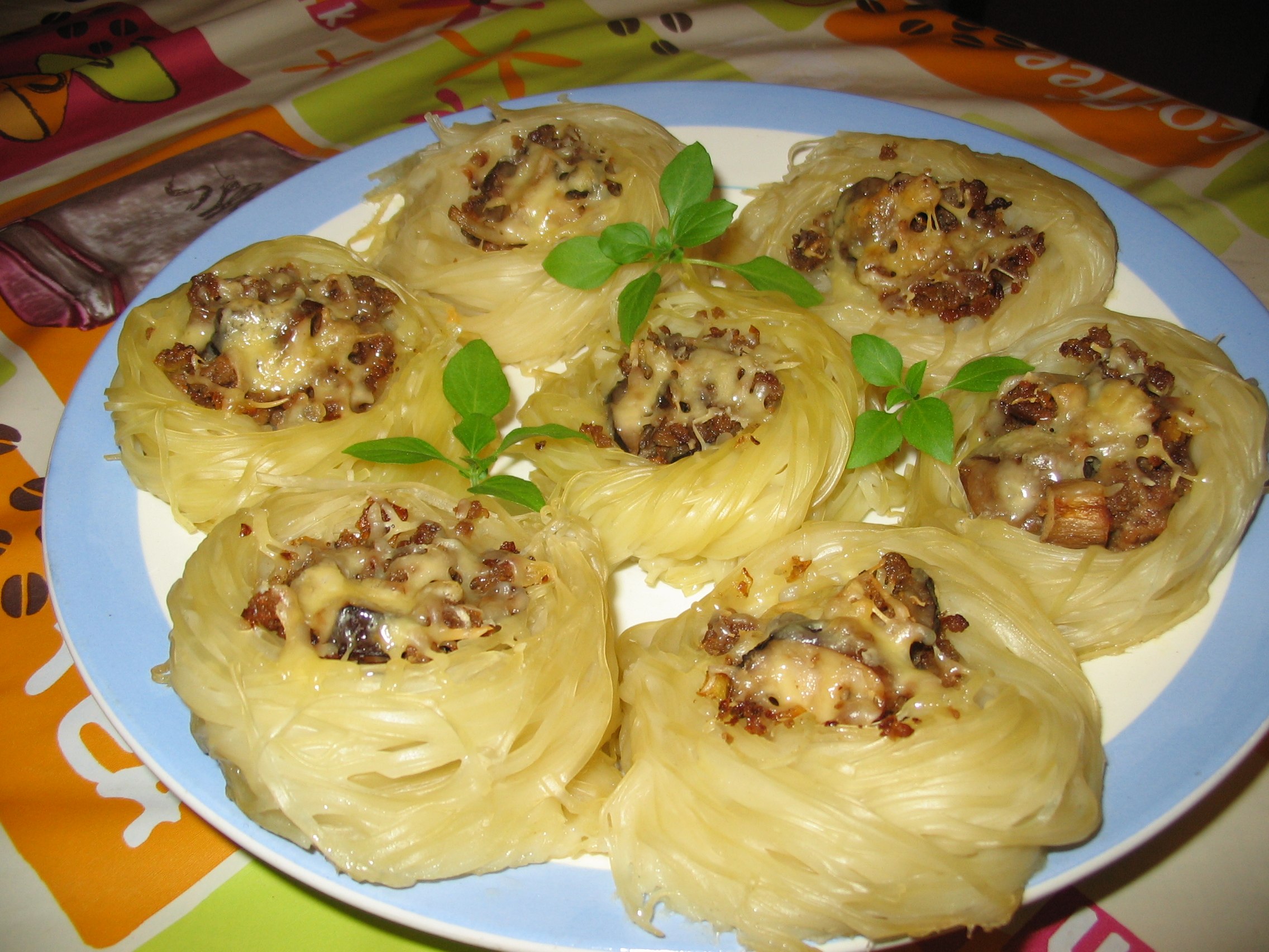 Вермишелевые гнезда с фаршем