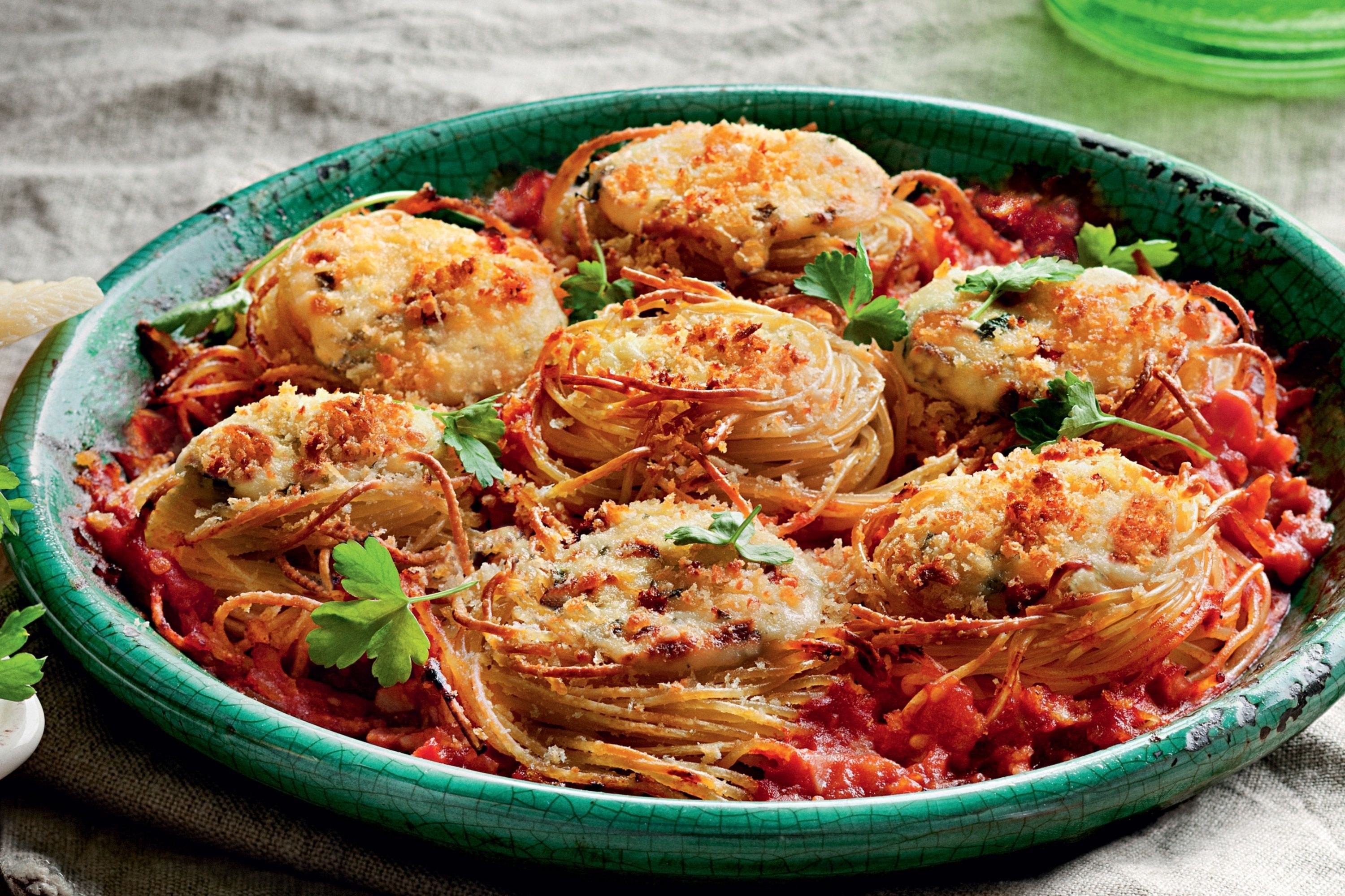 Макаронные фаршированные гнезда