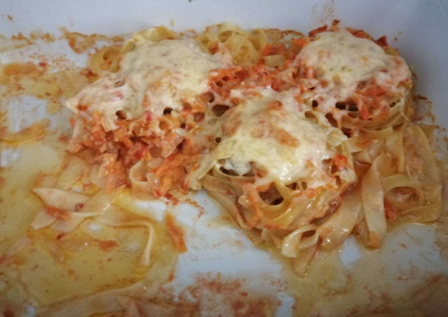 Макароны гнёзда с фаршем в духовке