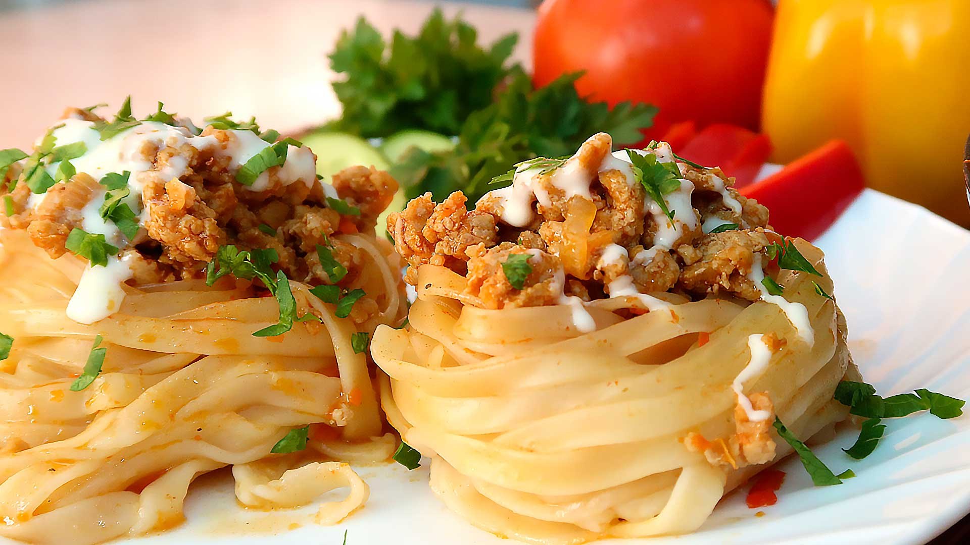 Фаршированные макаронные гнезда фаршем