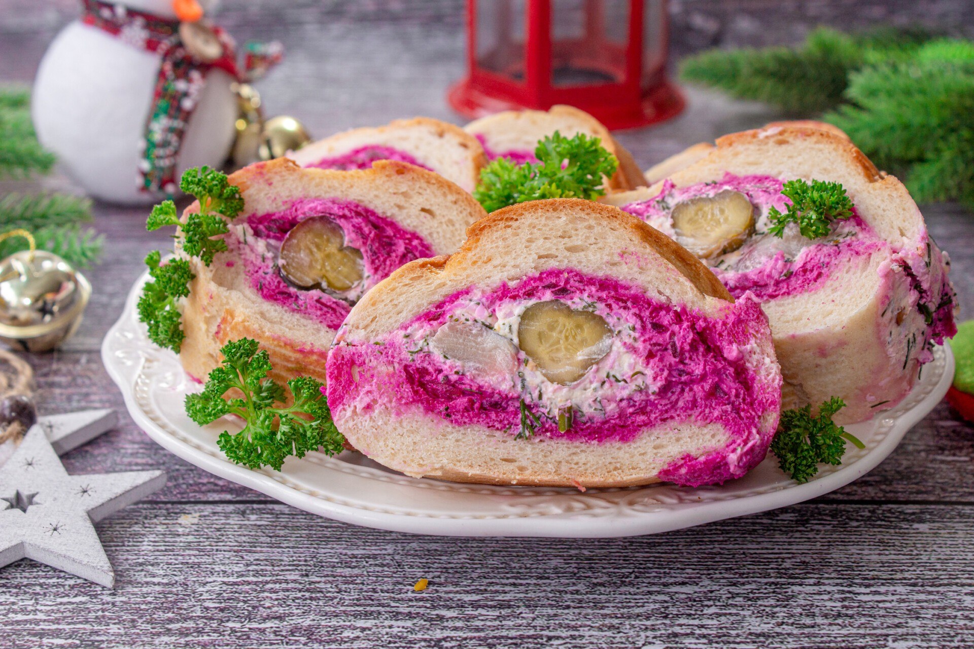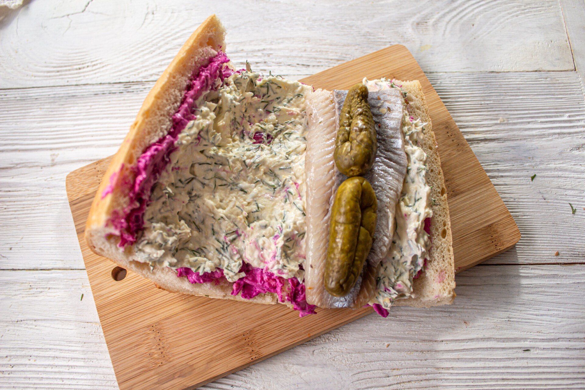 Селедка под шубой в багете