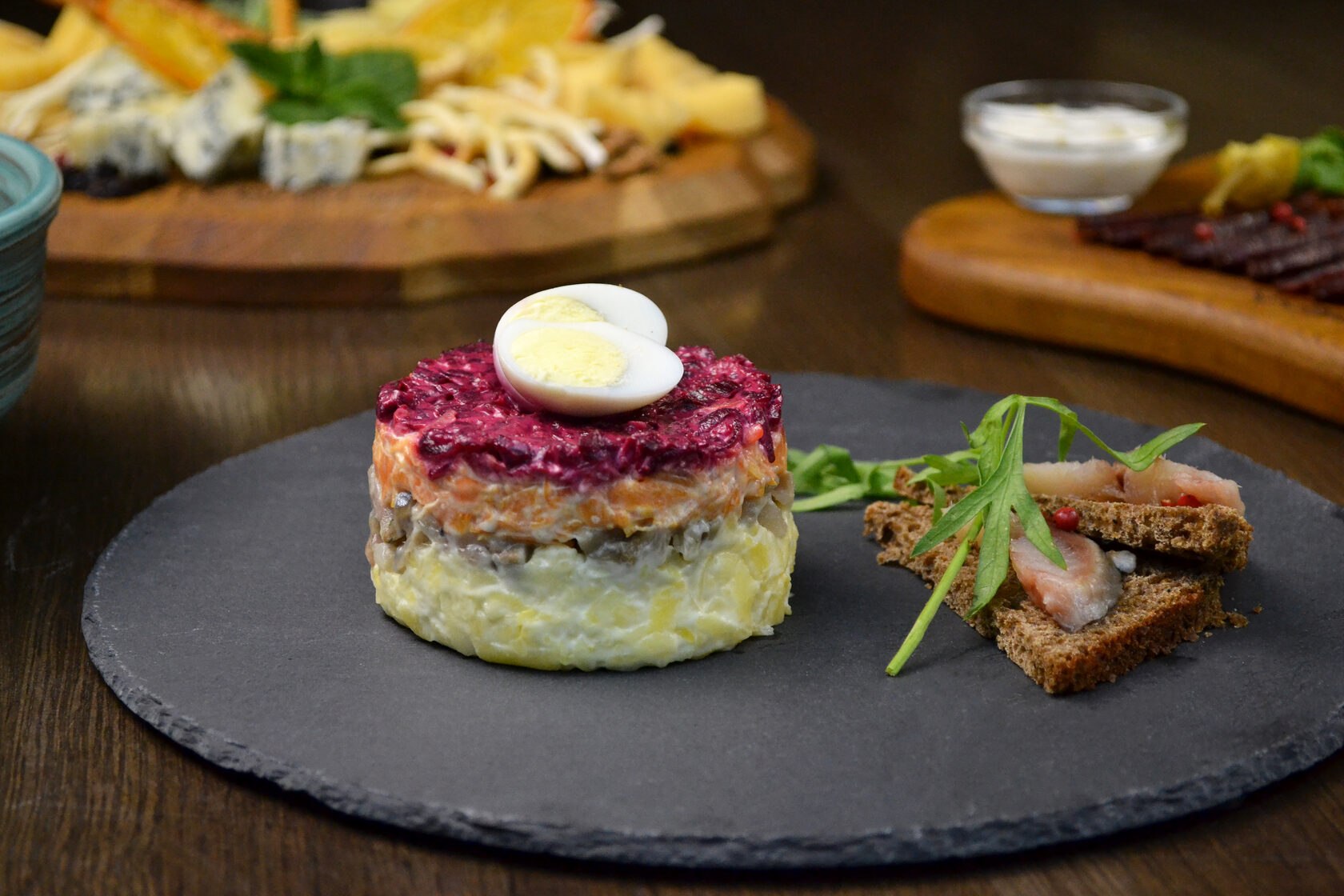 Сельдь под шубой на багете